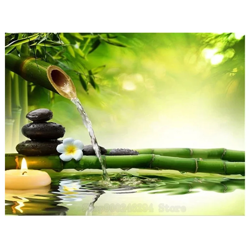 Полностью квадратная круглая дрель 5D DIY Алмазная картина Свеча и бамбук в воде Алмазная вышивка крестиком Декор FF1233