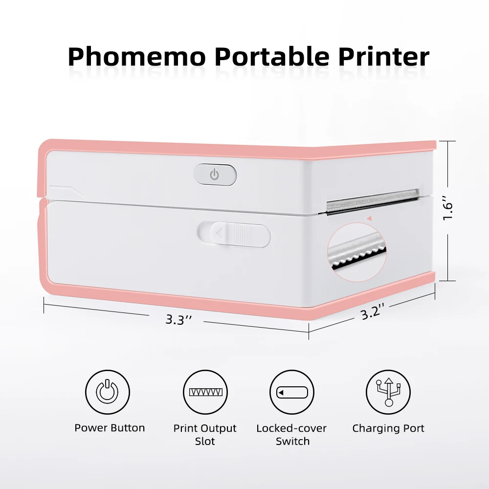 Pocket Printer-Mini, совместимый с Bluetooth, беспроводной портативный мобильный мини-принтер, термопринтер, совместимый с iOS + Android