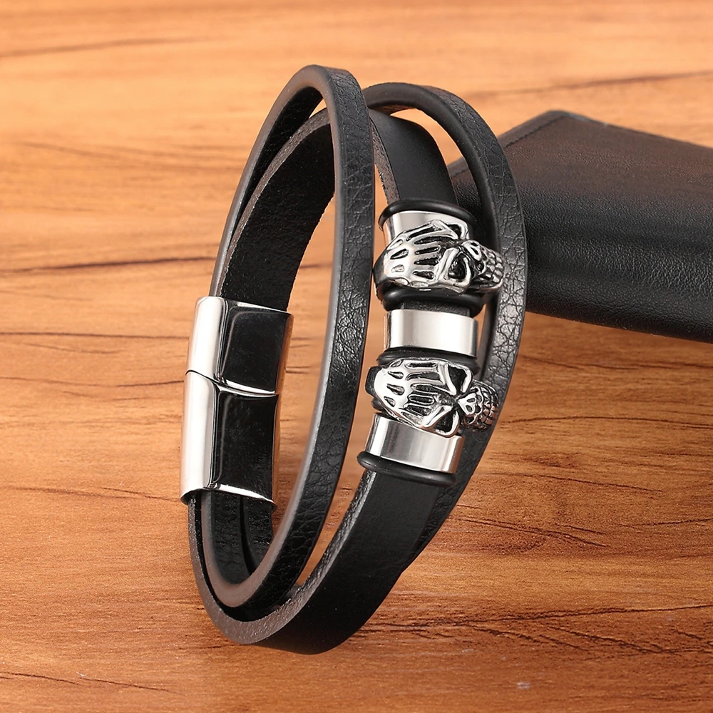 NameSkull Combination Stainless Steel Leather Men's Bracelet