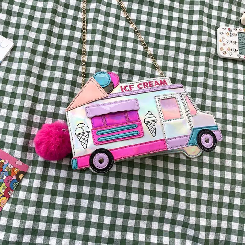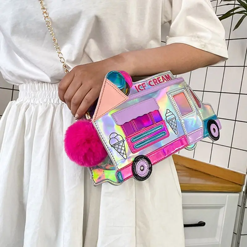 Новинка Женская мультяшная сумка в форме машины с принтом мороженого Женская сумочка-мессенджер сумка через плечо из искусственной кожи