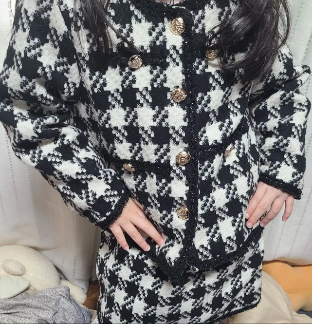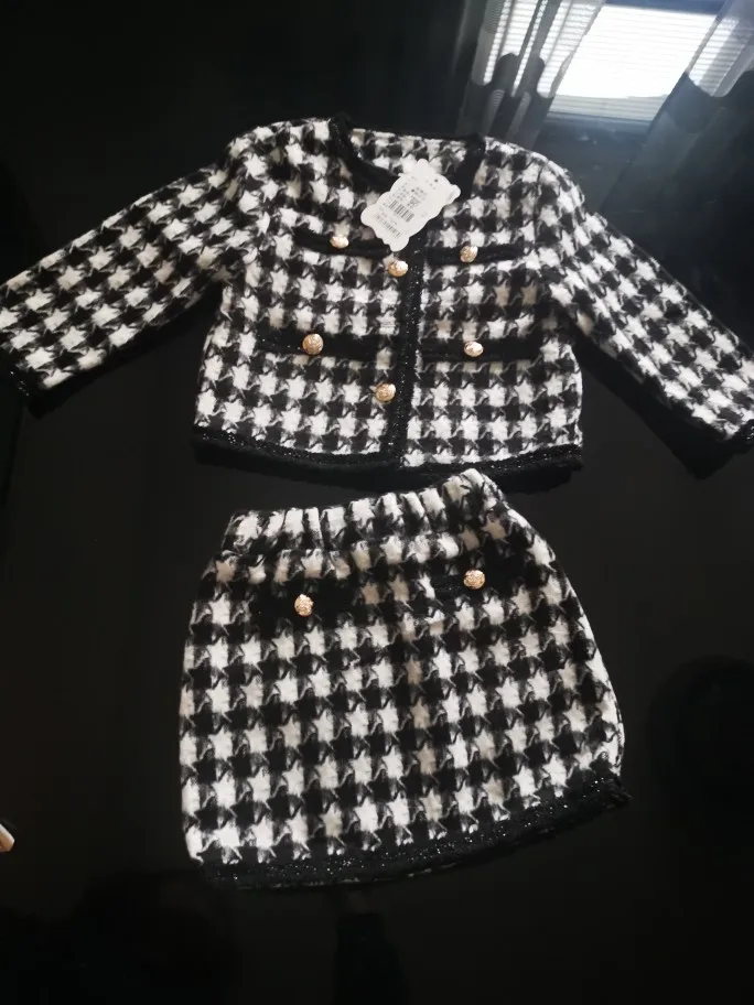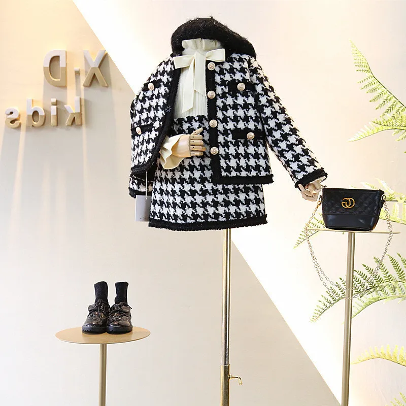 Классический комплект одежды в клетку для девочек, жакет + юбка, элегантный костюм из 2 предметов для маленьких девочек, осенний наряд, 2020