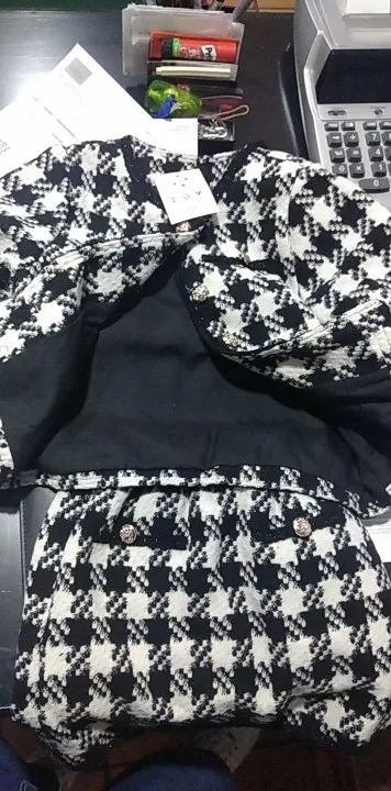 Очень долгая доставка, костюм на 4 везде торчат нитки, сшит не аккуратно. Низ юбки кривой надо отдать в ателье.