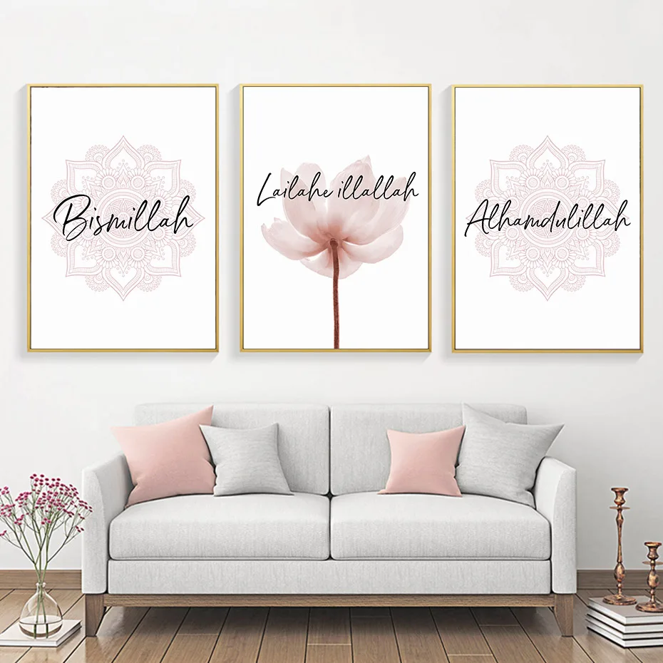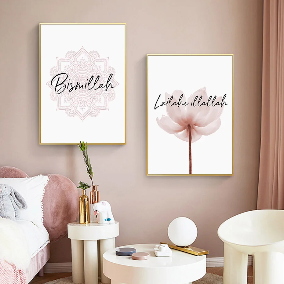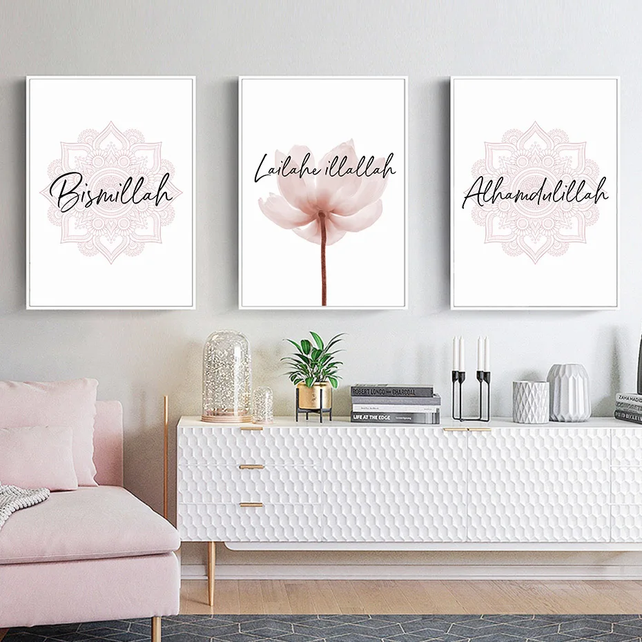 Современная розовая Цветочная мусульманская настенная Картина на хо...