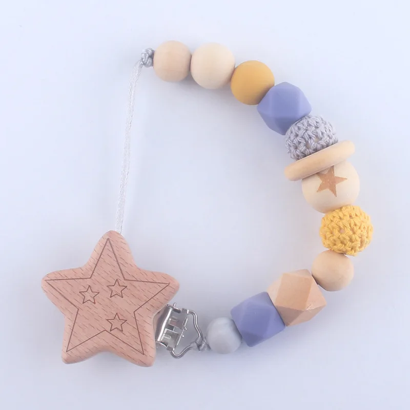 Новый силиконовый зажим для соски, деревянная бусина, искусственная детская игрушка для прорезывания зубов, цепочка для соски, оптовая продажа