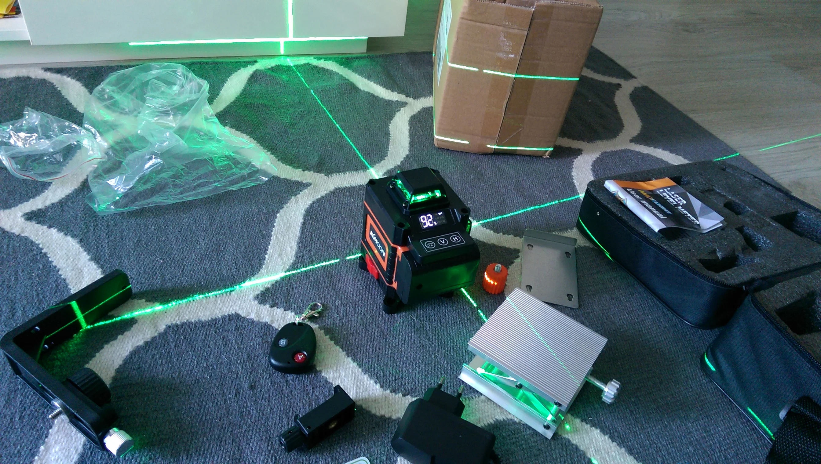 Пульт дистанционного управления не работает. Верхняя линия лазера труднее отличить. Я еще не проверил точность.