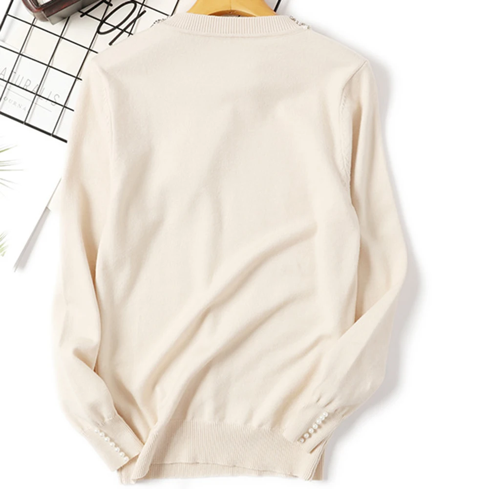 Повседневный женский осенне-зимний Однотонный свитер с бусинами и в...