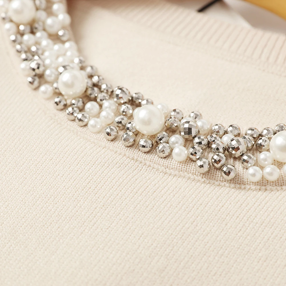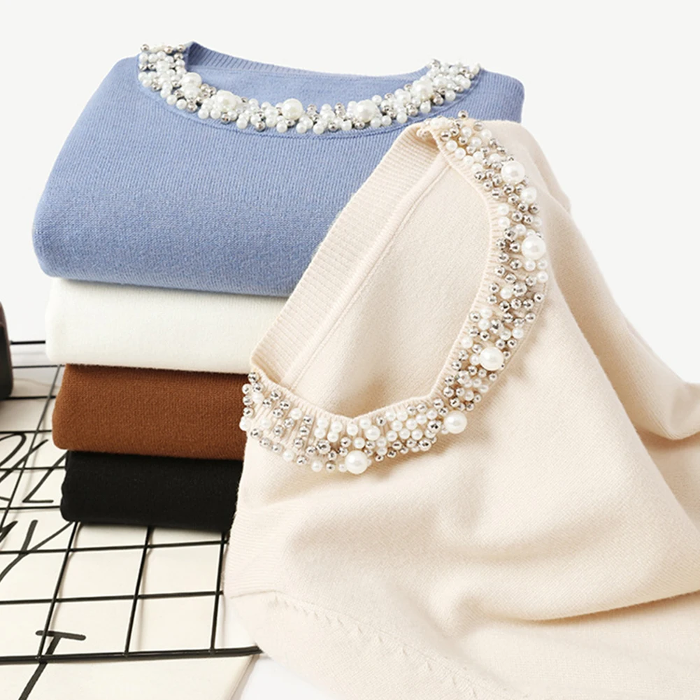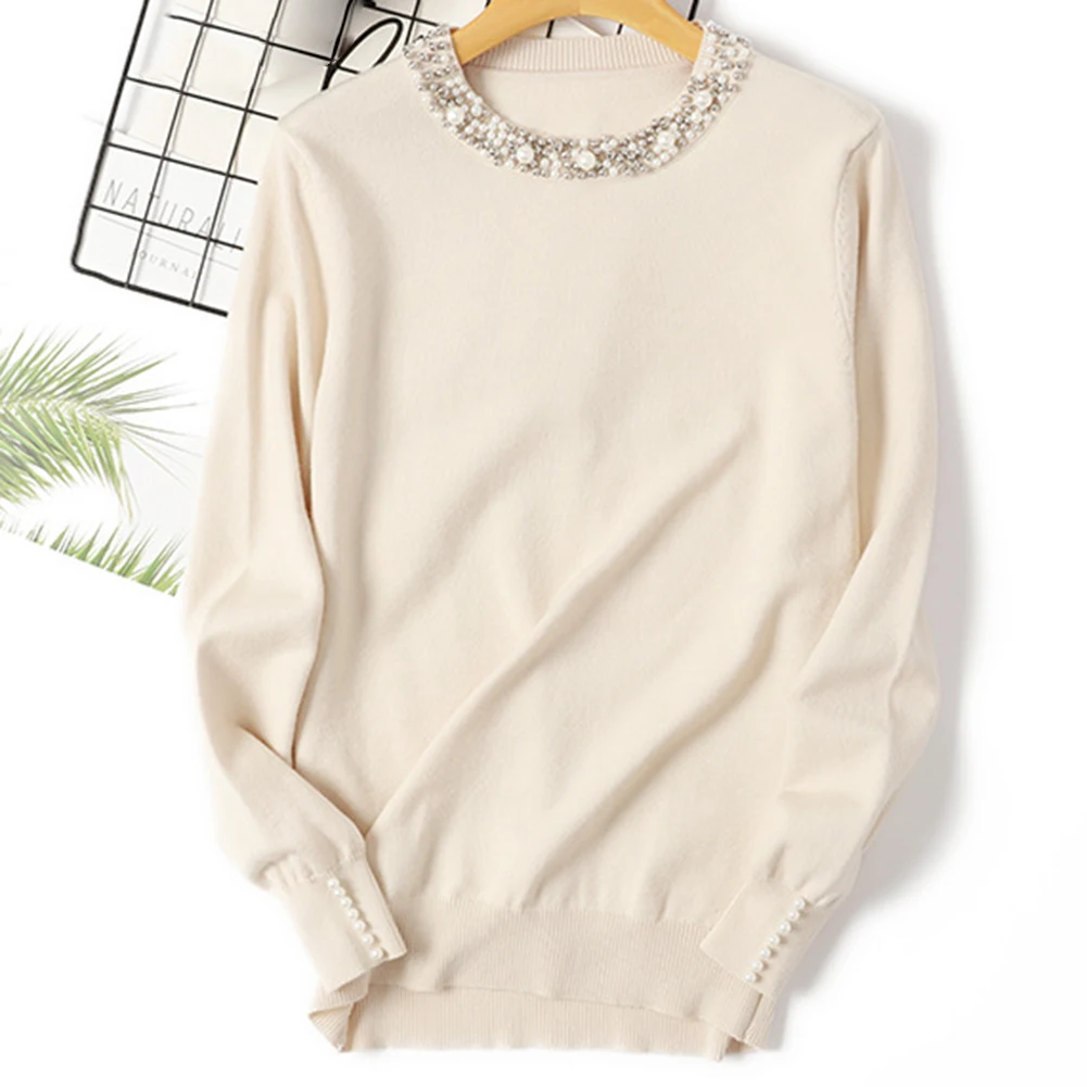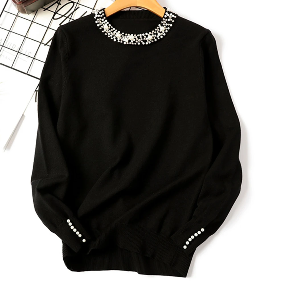Женский свитер с бусинами, элегантный джемпер с круглым вырезом, Св...