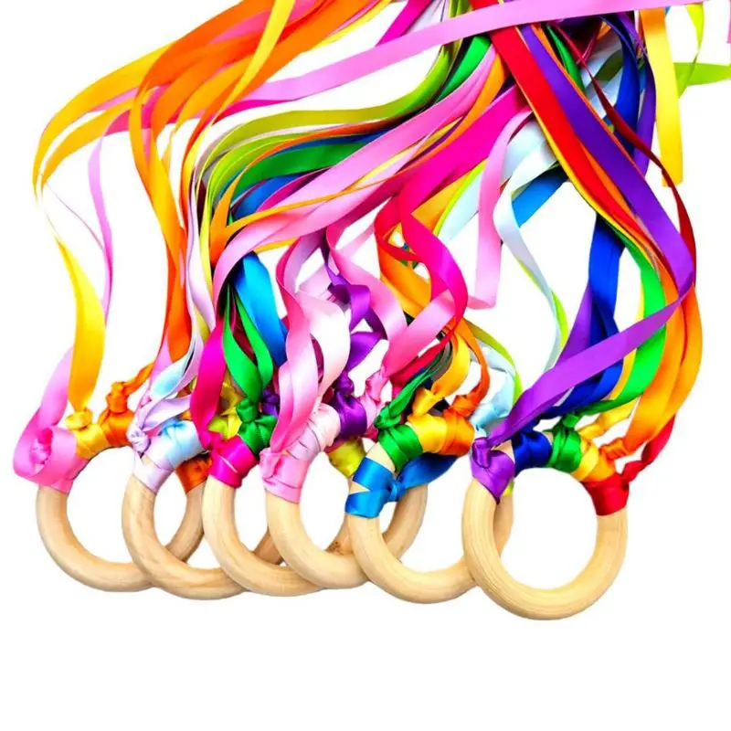 Кольцо из натуральной радужной деревянной ленты, Детские Прорезыватели для зубов, Монтессори, сенсорные игрушки, подарок для душа