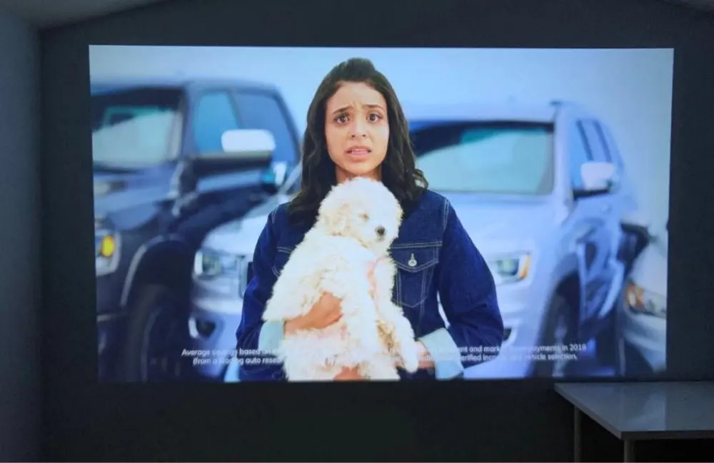 Выглядит хорошо, когда в комнате темно. Чтобы избежать размытого поля, вам нужно сфокусировать проектор очень хорошо, чтобы не использовать перспективный консилер. Чтобы воспользоваться возможностями проектора и получить хорошую фотографию, вы должны проецировать на специальный экран для проекторов, а не на стене, окрашенной в белый цвет. Хорошее качество проектора-цена.