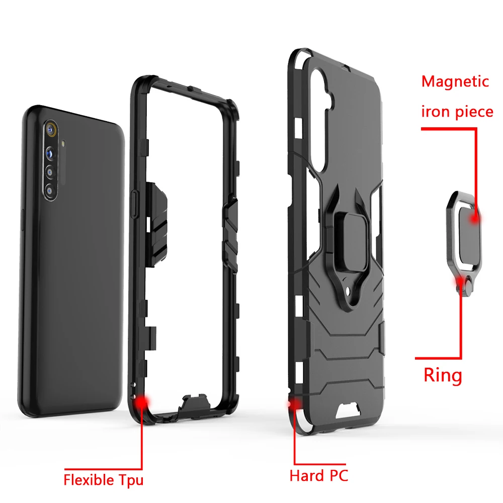 Противоударный чехол-броня для Oppo Realme XT X2 XT 730G K5 6,4 "Гибридный Жесткий ПК + Мягкий ТПУ вращающийся чехол-подставка для кольца