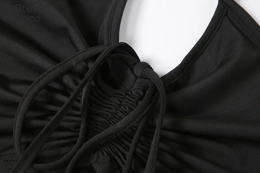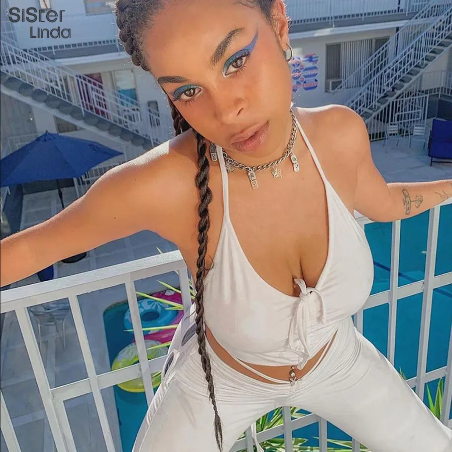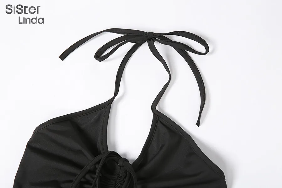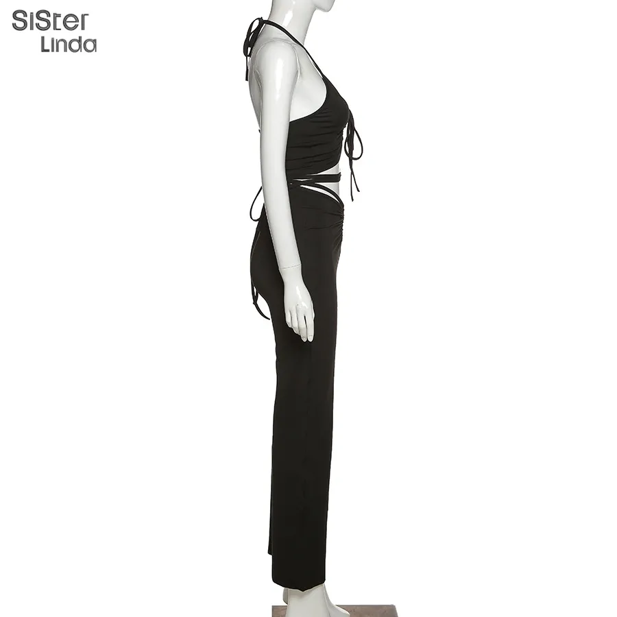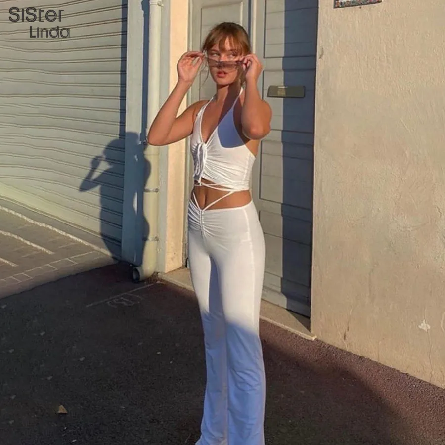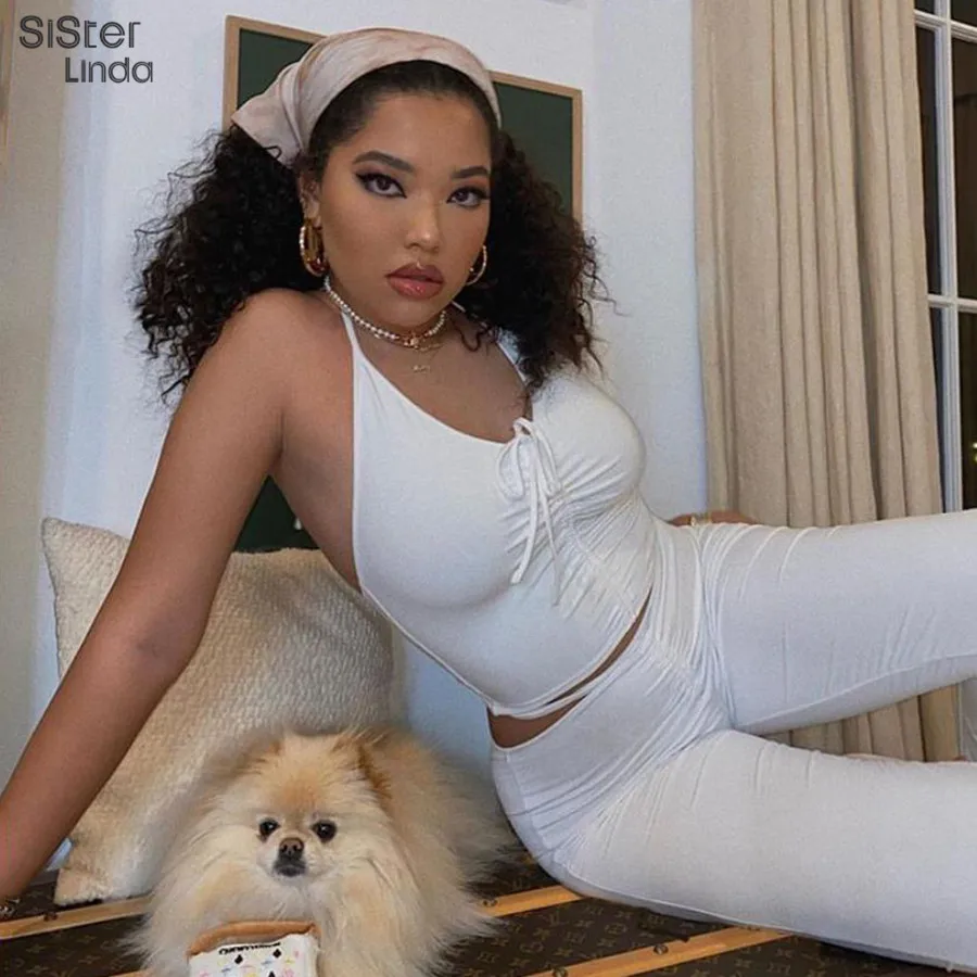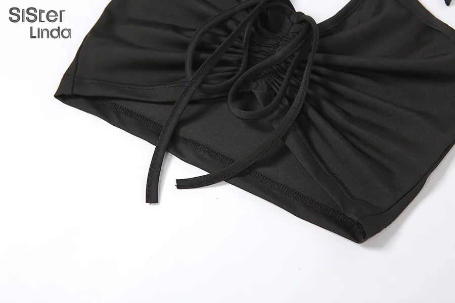 Женский комплект из двух предметов Sisterlinda, повседневный топ с рюшами и леггинсы, базовая уличная одежда на шнуровке, 2019