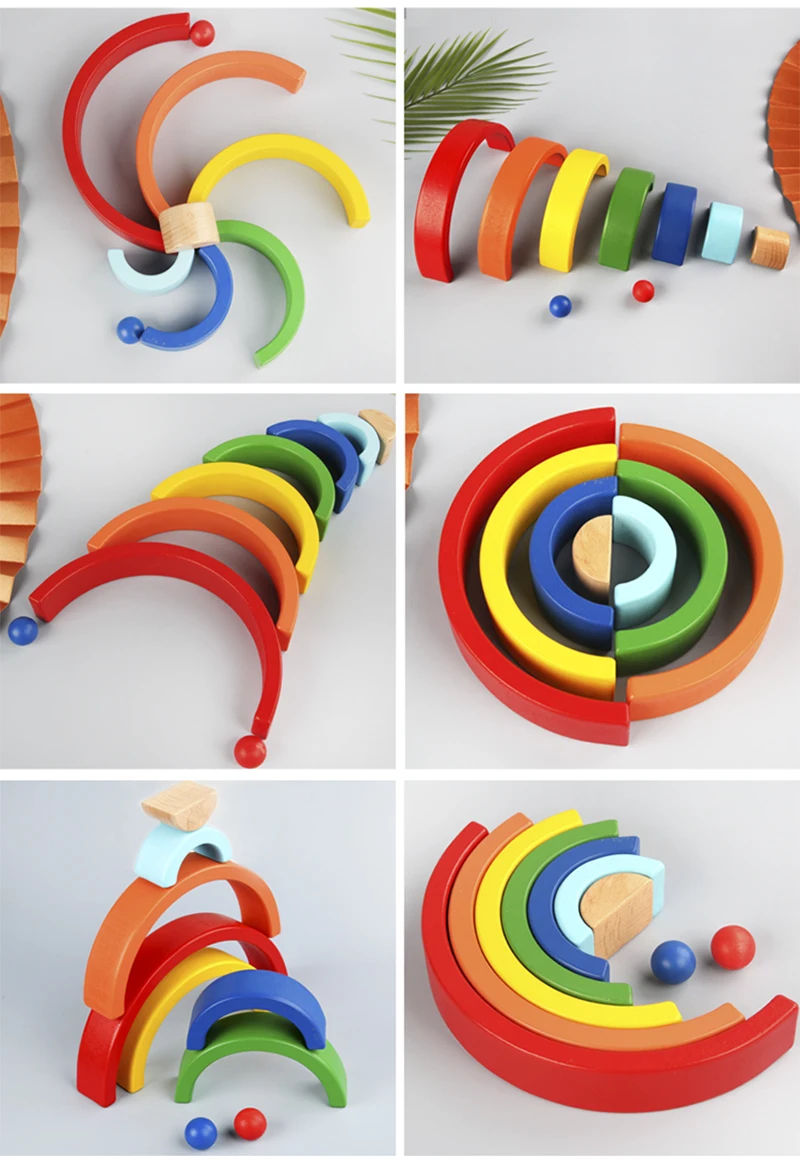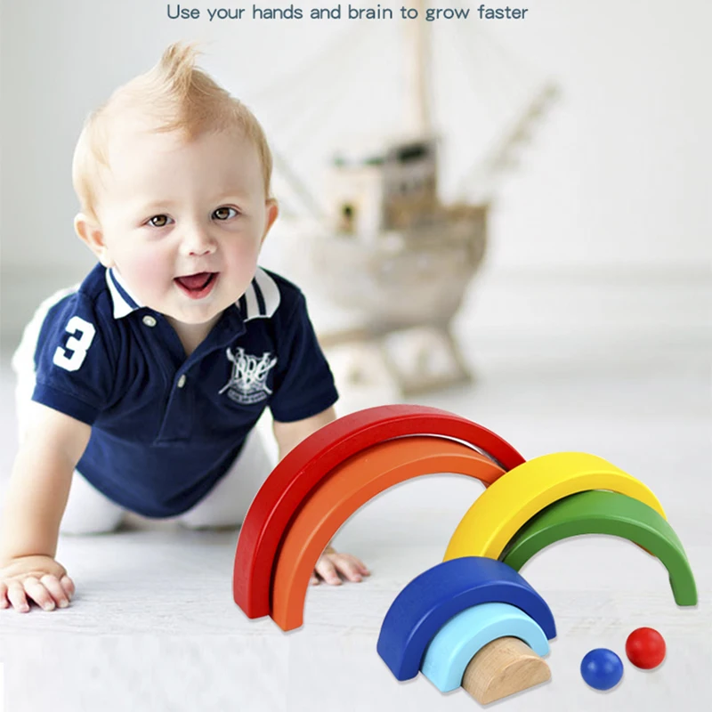 Монтессори Деревянные радужные строительные блоки арочный мост полукруг сборка укладка игрушки Детские обучающие игрушки Подарки Маленькие