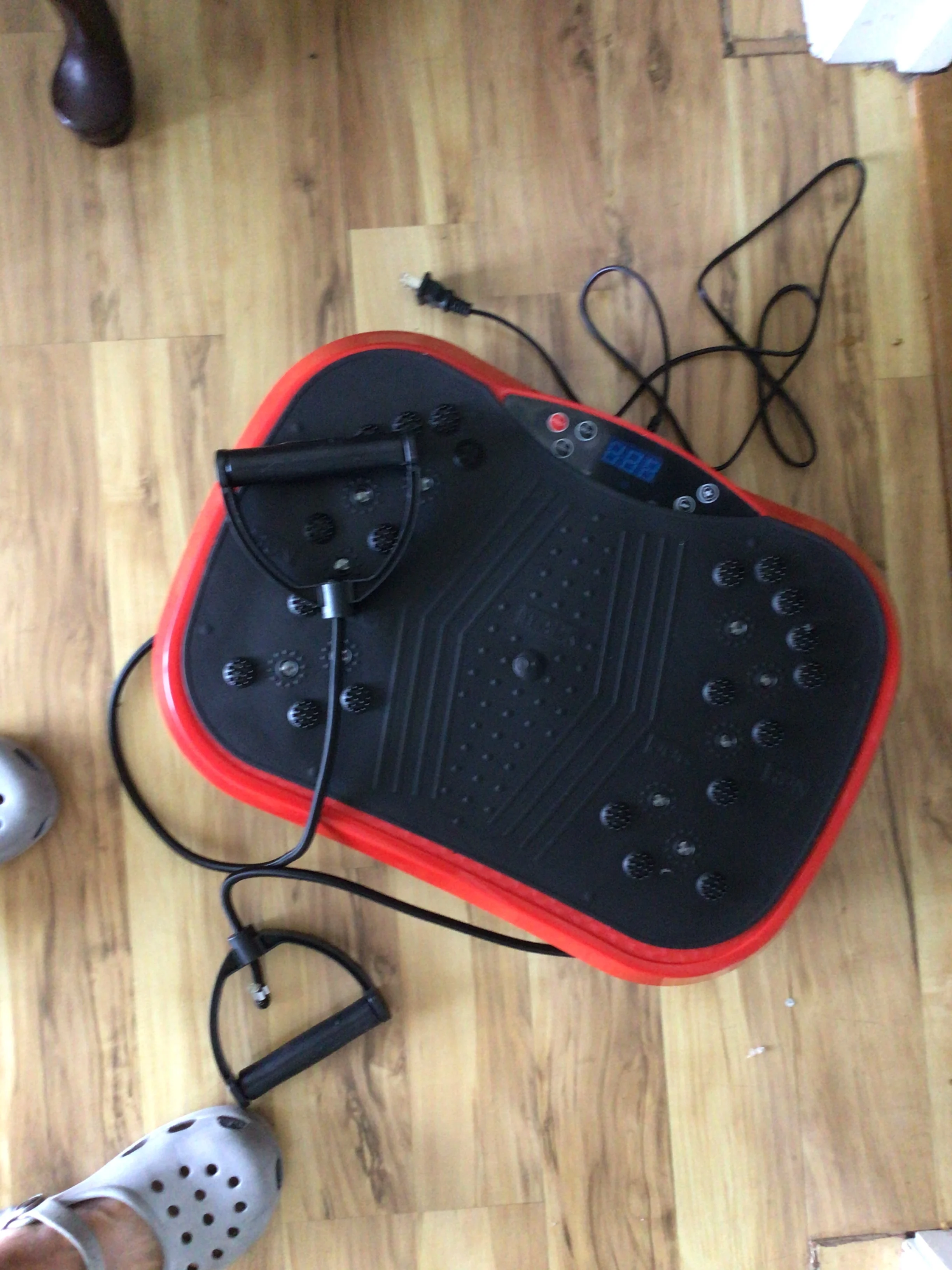 Характеристики:Цвет: черный + красныйНапряжение: 110 ВМощность: 200 ВтМаксимальный вес пользователя: 150 кгРазмер: 47x33x1 3 см/18,5 "x 12,99" x 5,12"[Перевод единиц измерения: 1 см = 0,3937 дюйма, 1 дюйм = 2,54 см]