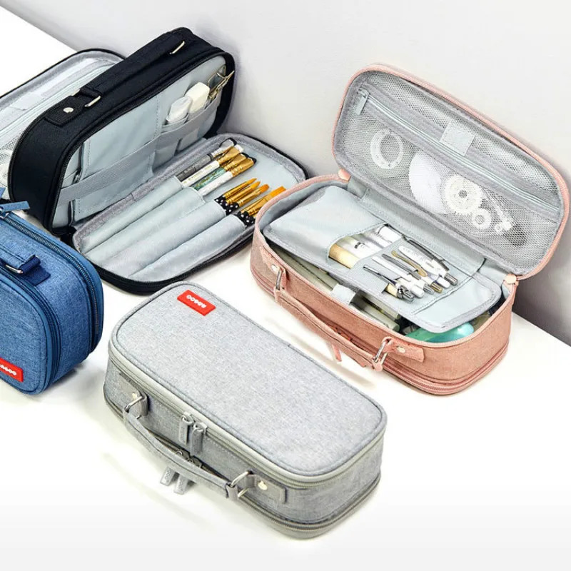 Портативный большой холщовый чехол для карандашей, милый двухслойный пенал для детей, хранение ручек карандашей, сумка, школьные принадлежности
