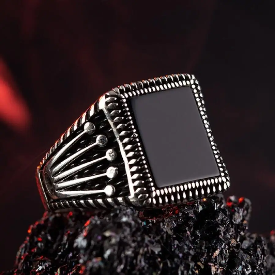 Серебро 925 пробы квадратное черное ониксовое мужское кольцо с камнем Королевская корона качество новое необыкновенное роскошное ювелирное изделие специальный элегантный дизайн
