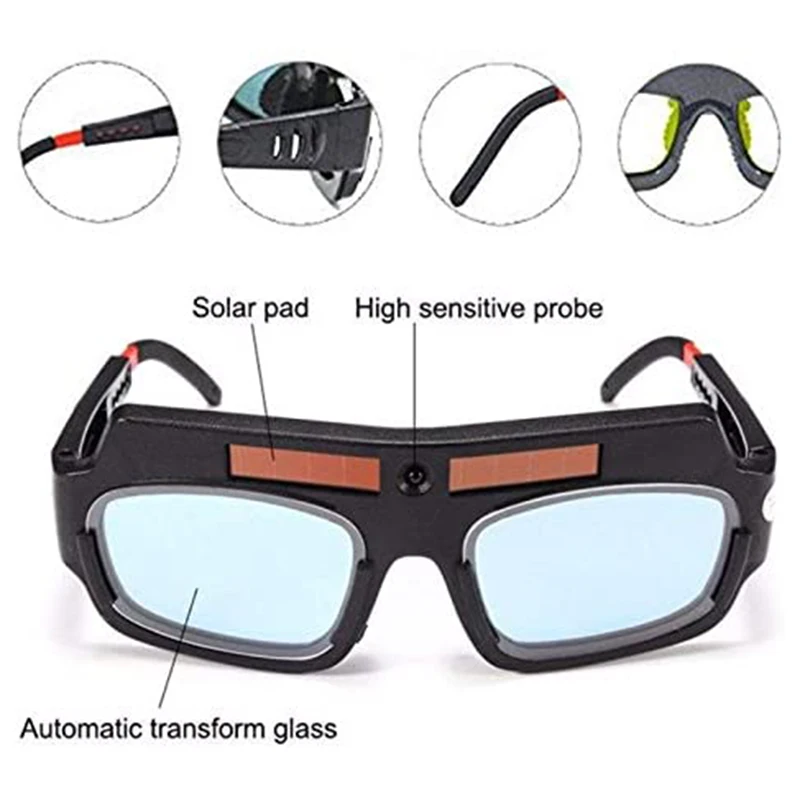 Особенности: Профессиональные сварочные очки: Эти Солнечные Авто затемняющие сварочные очки изготовлены из высококачественного поликарбоната и АБС-пластика, прочные и долговечные в использовании; Разработаны с мягкой резиной, очень удобно носить в течение длительного времени; он также оснащен анти-ультрафиолетовым, инфракрасным излучением, антибликовым покрытием, хорошо защищает ваши глаза во время работы Автоматическое затемнение дизайн: Автоматическое затемнение фильтр автоматически изменяется от состояния светильник к темному, когда дуга ударена, и он возвращается в состояние светильник, когда Сварка останавливается Хорошая защита: сварочные очки предназначены для защиты глаз от искры и вредного излучения при нормальных условиях сварки Удобный в использовании: оправы очков можно регулировать; Зеркальные ножки могут регулировать длину, автоматический светильник с переменными линзами вес и удобство, с превосходной ударопрочностью, использование более безопасного и гарантированного Широкое применение: солнечные элементы, не требуется изменение батареи; Применяется для газовой сварки, сварки стали, резки, сварки и так далее. Спецификация: Материал линз: поликарбонат Функция: Автоматическое затемнение на солнечной батарее Переменный светильник: 5/10000s