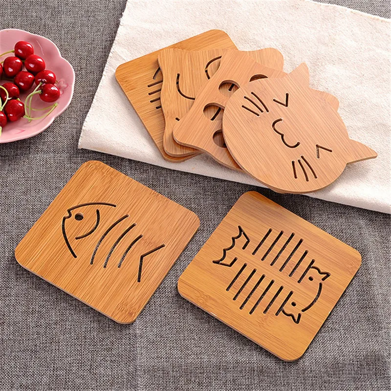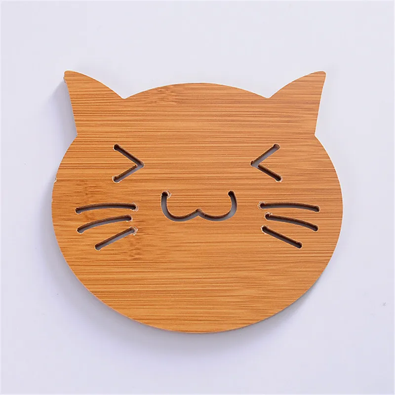 Бамбук полый кошки Совы Форма термостойкий Коврик для чашки держате...