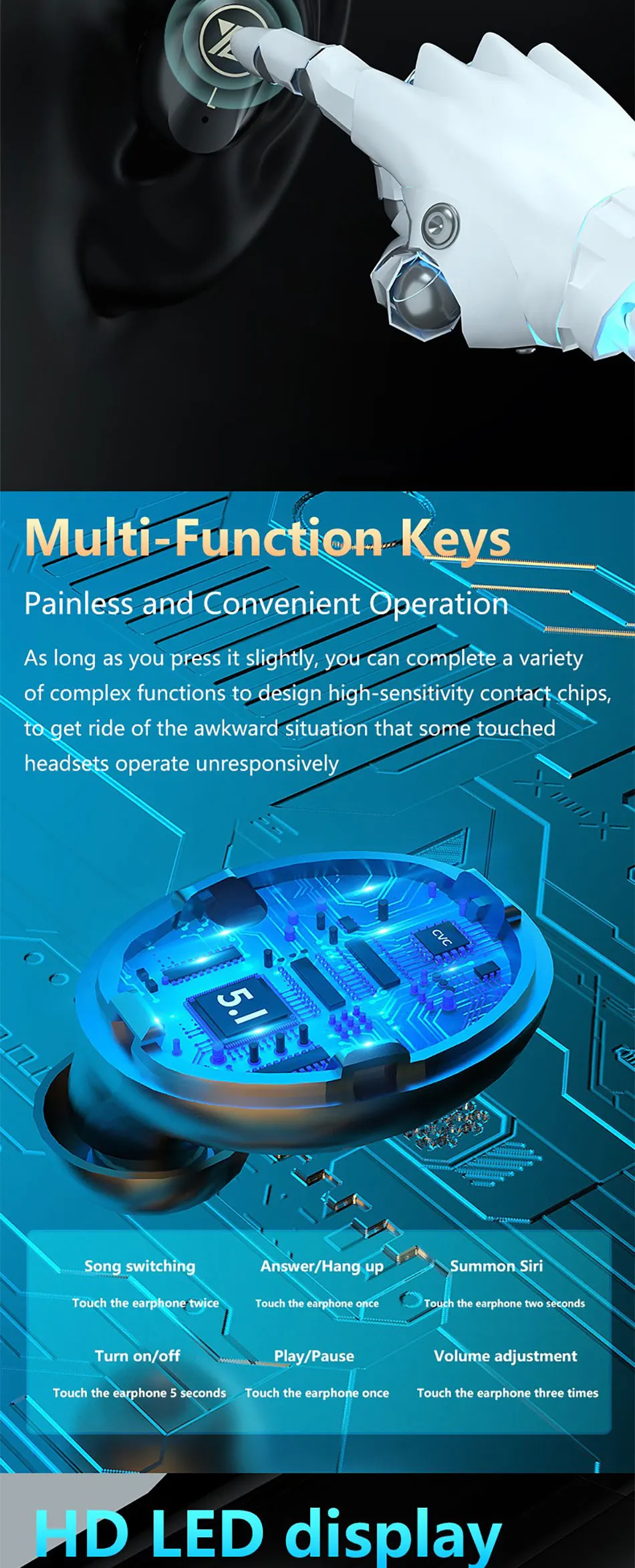 Беспроводные наушники TWS Bluetooth 5,1, спортивные наушники светод...