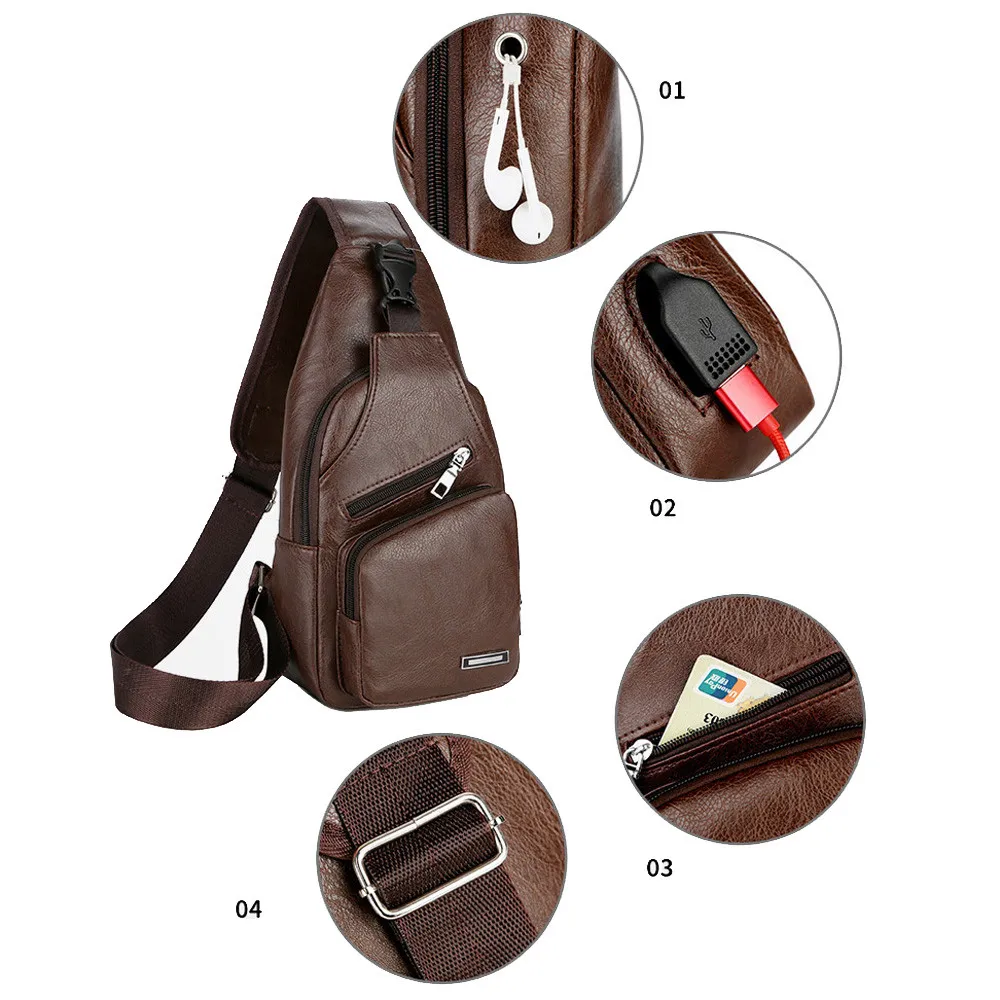 Сумка-мессенджер Мужская, с выходом Usb для зарядки, диагональ сумка через плечо из искусственной кожи