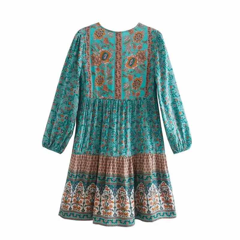 Женское винтажное платье с цветочным принтом, Пляжное богемное Плис...