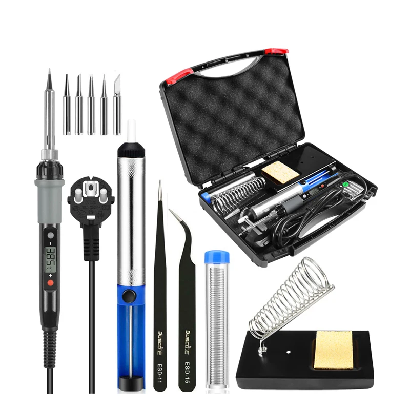 [Идеальный паяльный набор] в комплект паяльника входят паяльник, мини цифровой мультиметр, измерительные выводы, демонтажный насос, 5 многочисленных наконечников, Оловянная проволочная трубка, подставка с чистящей губкой, отвертки, электрическая лента, антистатический пинцет, лезвие и ПУ сумка для переноски инструмента.