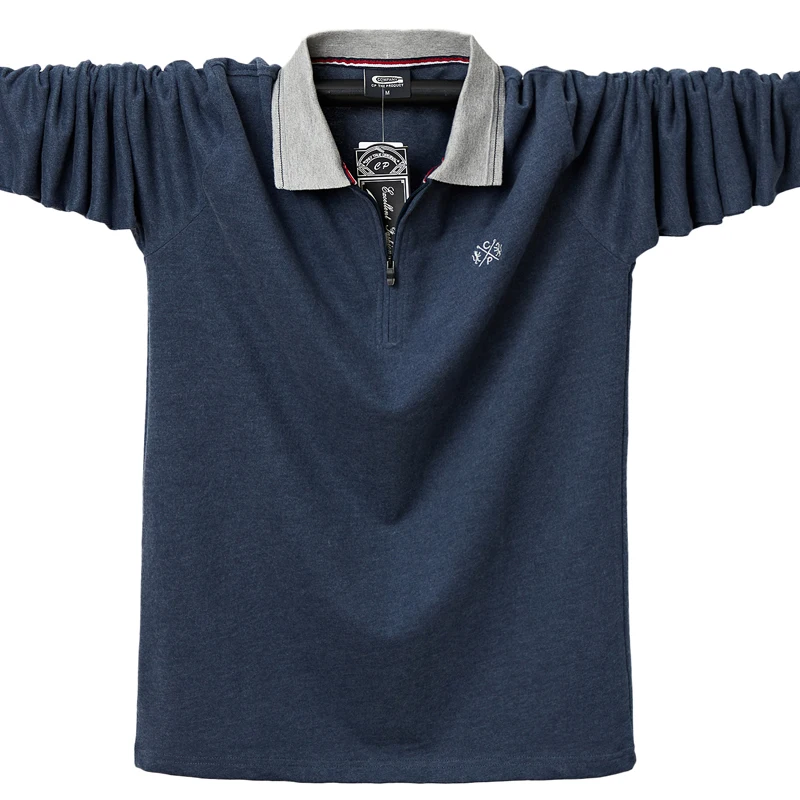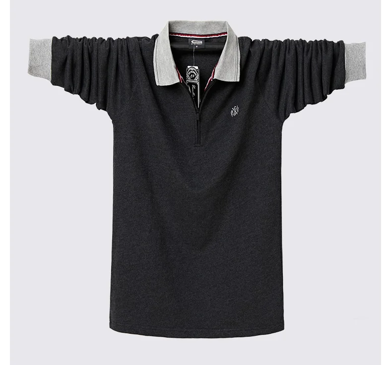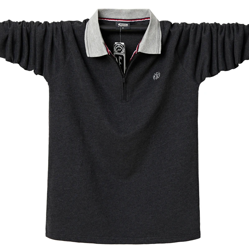 Мужская хлопковая рубашка-поло, с отложным воротником и длинными рукавами, батальных размеров 6XL