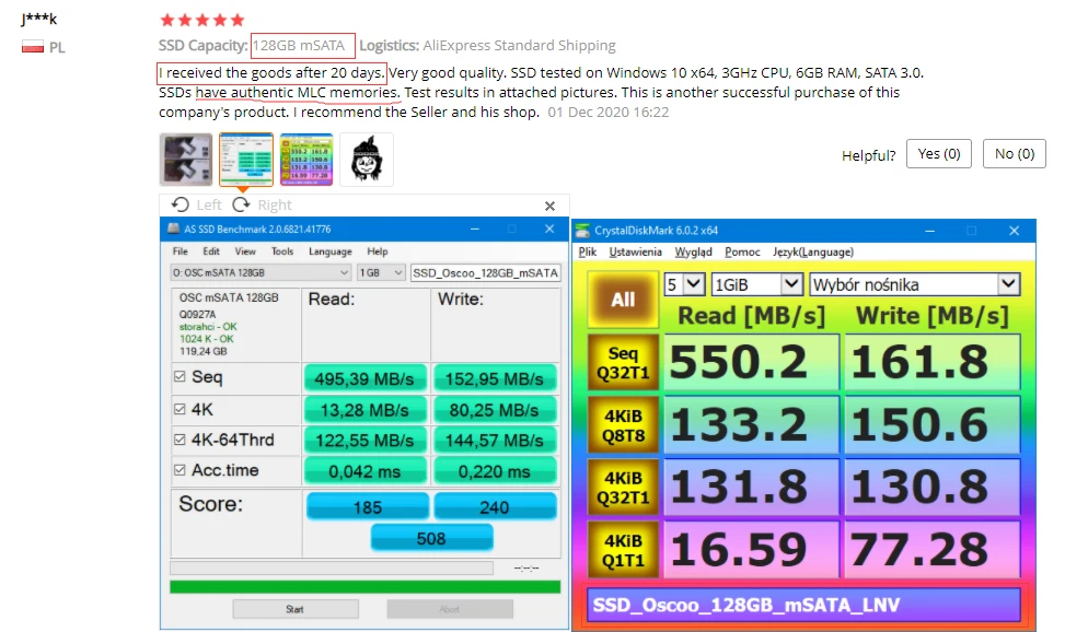 Страна: RU SSD Capacity: 256GB mSATA Доставка: Standard Shipping 01.03.2021