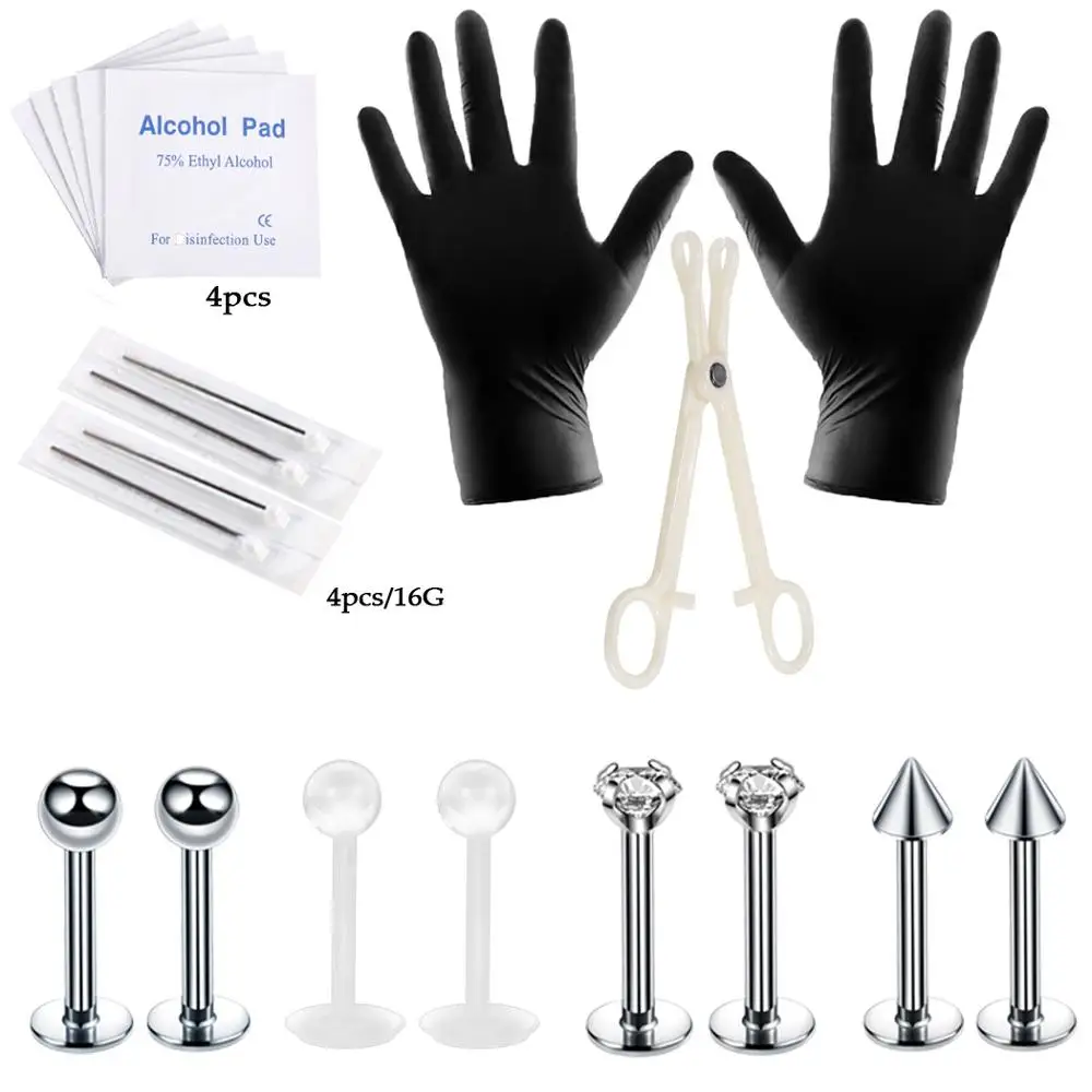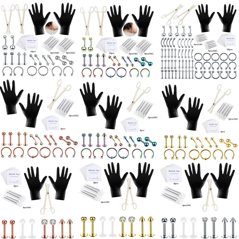 Набор для пирсинга тела с Упаковка иголок, носовой перегородки, пупка, набор инструментов для Пирсинга Ушей, трагус для сосков, бровей, губ, набор зажимов