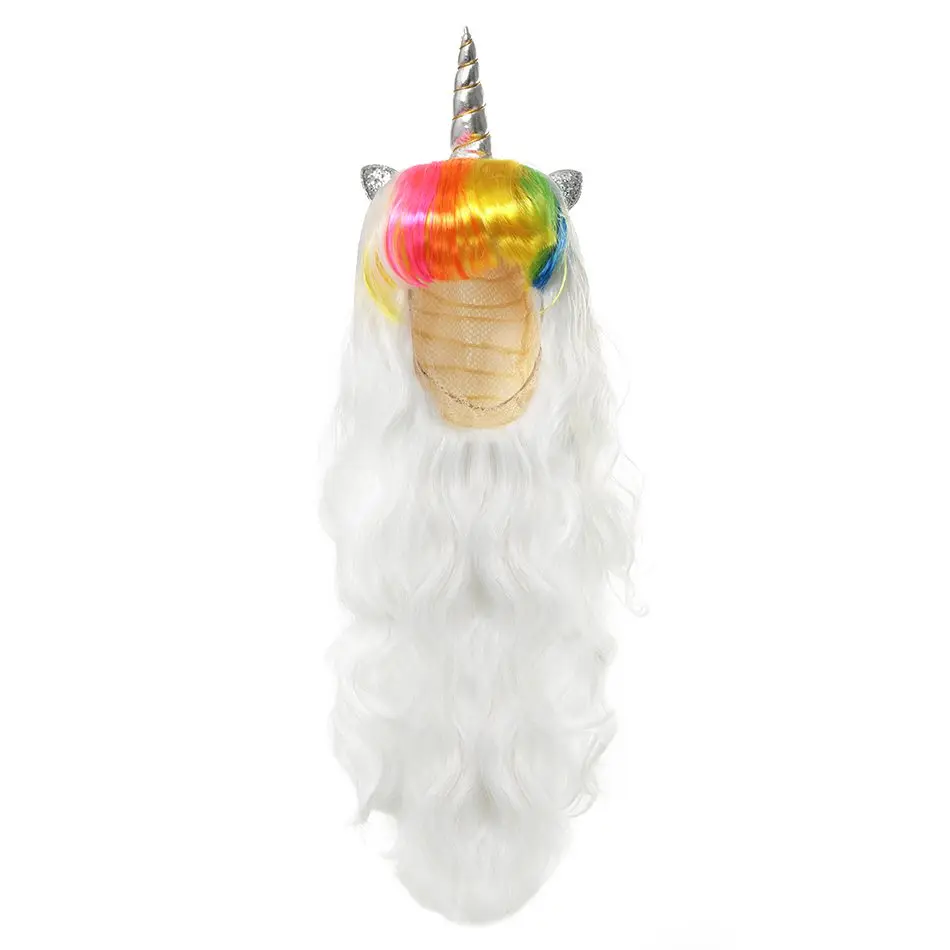 Парик Единорог для девочек, длинные волнистые искусственные волосы с гудком, для косплея, детский, украшение на день рождения