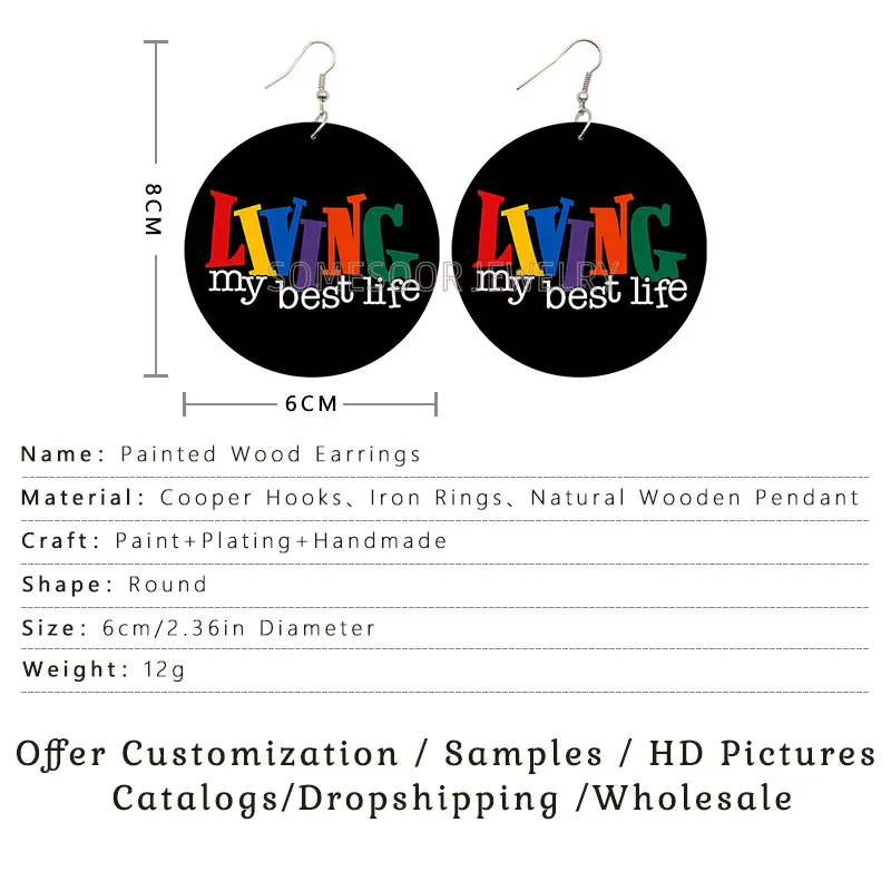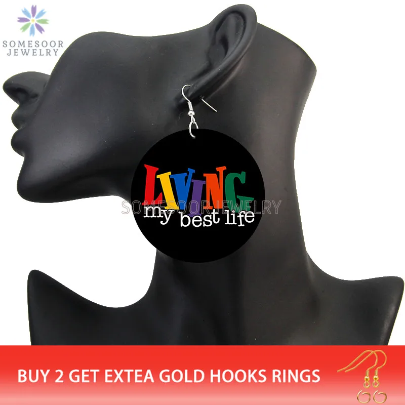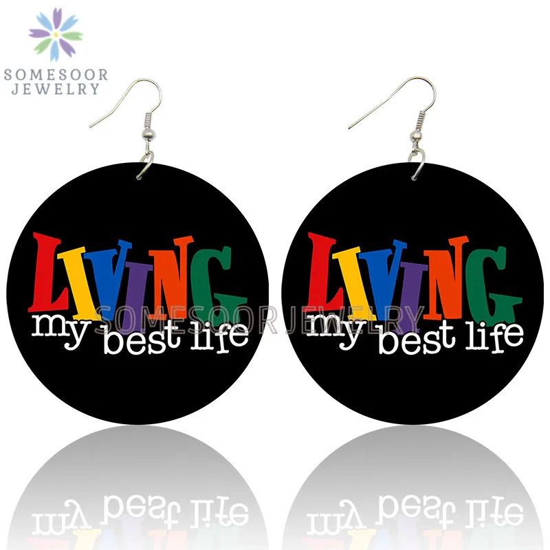 SOMESOOR Living My Best Life африканские деревянные висячие серьги Inspire Sayings обеих сторон Деревянные Подвески с принтом петли для женщин Подарки
