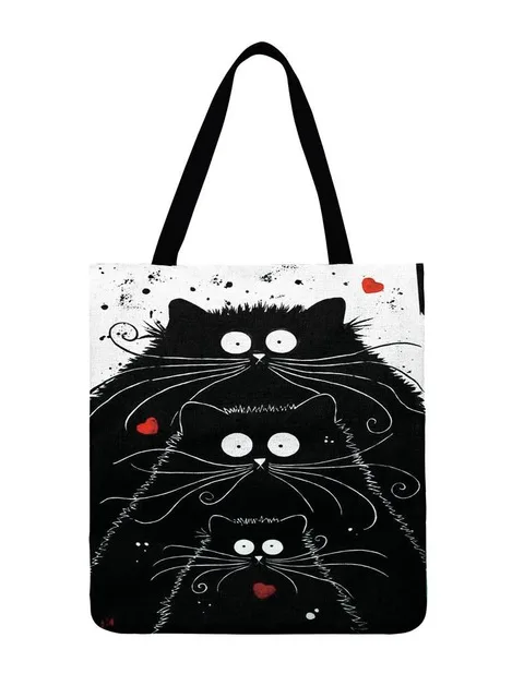 Сумка-тоут женская из льняной ткани с принтом кошки