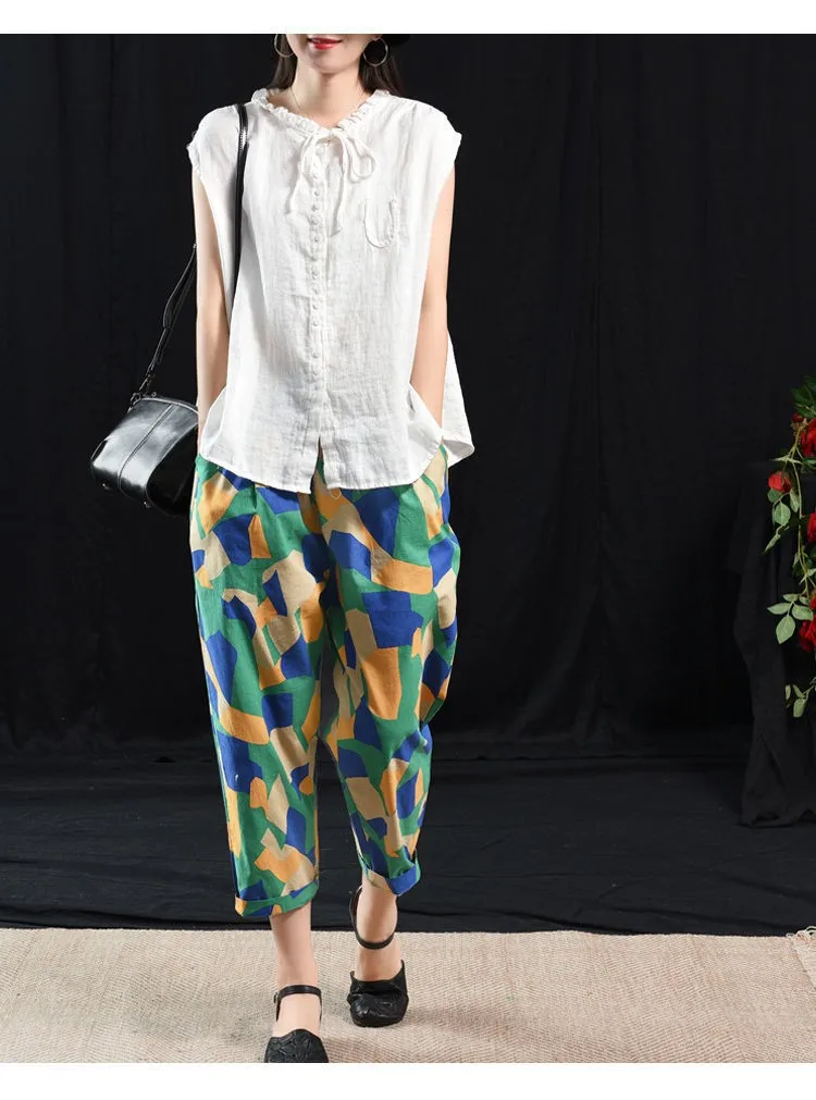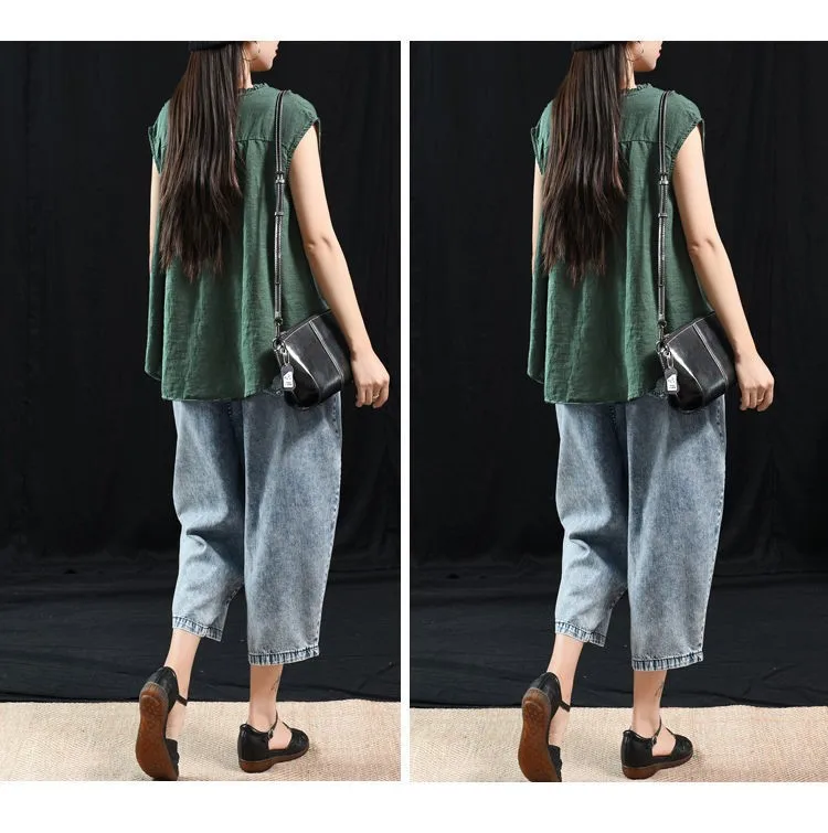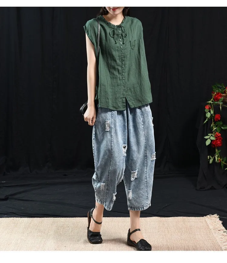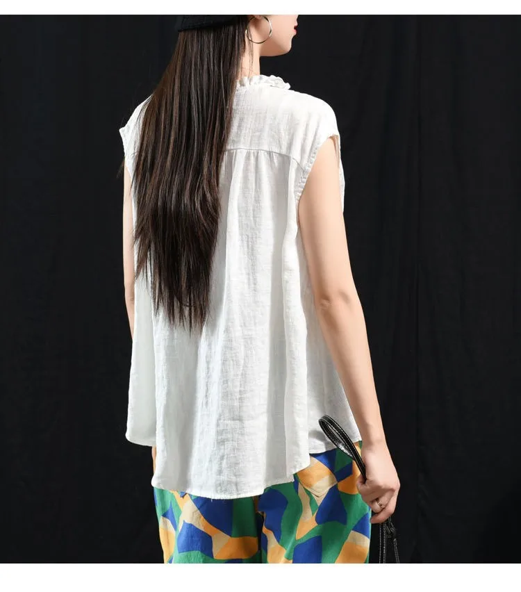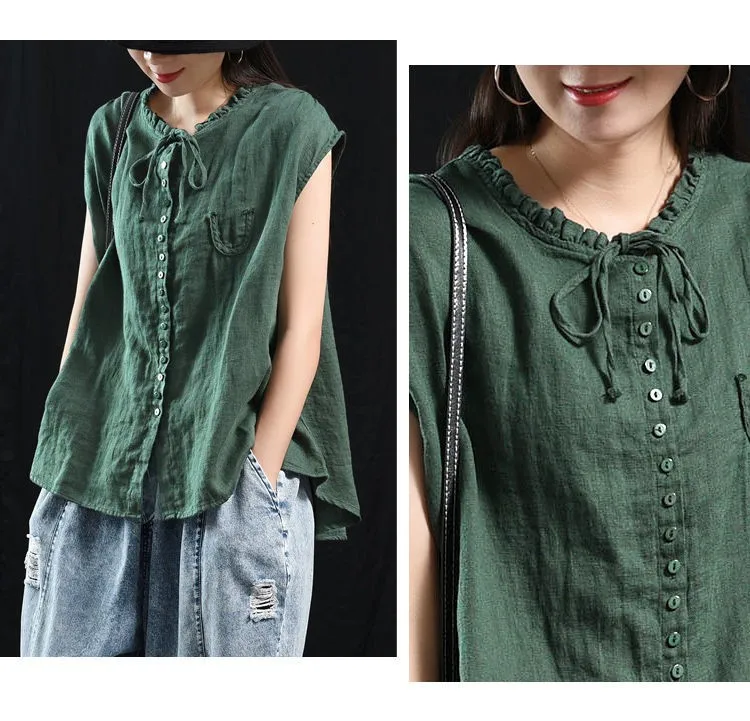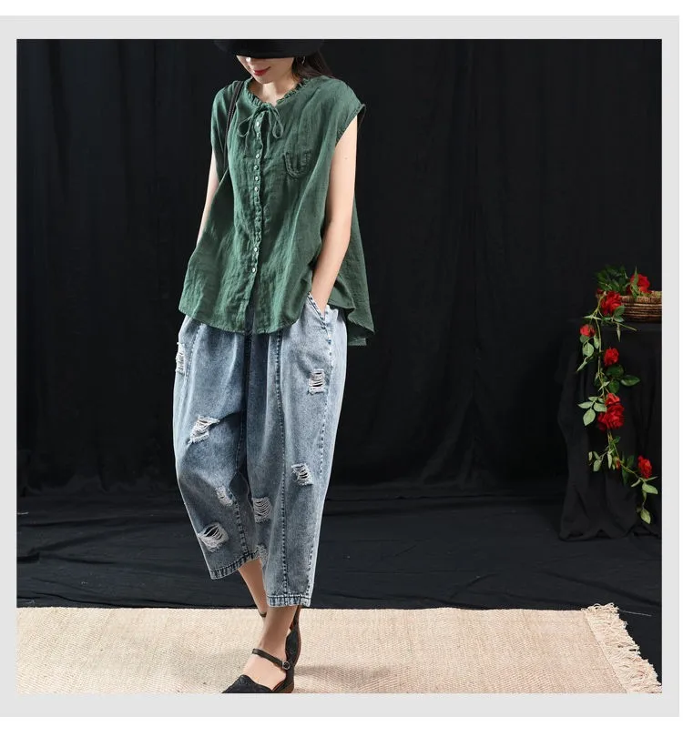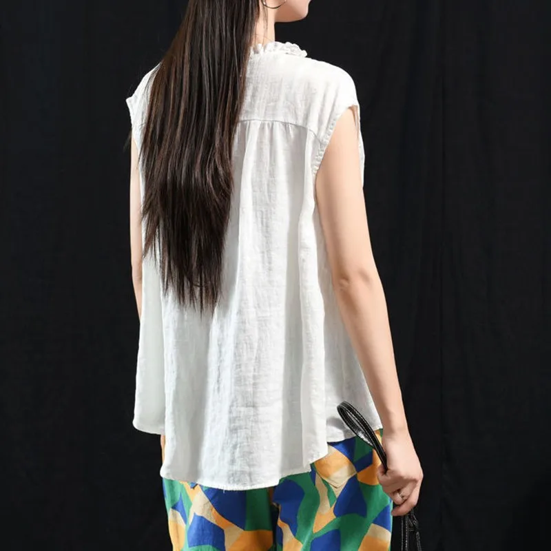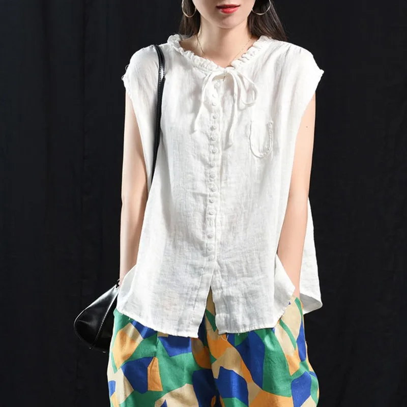 Женские топы из хлопка и льна, Новинка лета 2020, искусство, стиль, винтажный, однотонный, свободный, повседневный женский безрукавка, жилет P1339