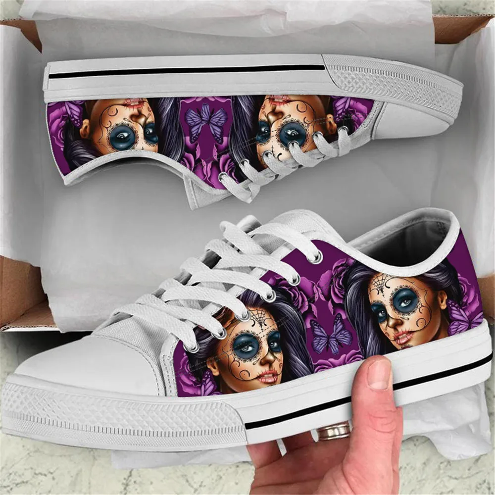 INSTANTARTS Sugar Skullженские туфли из вулканизованной парусины цветочное готическое парусиновые туфли с низким верхом Демисезонные женские кружевные кроссовки