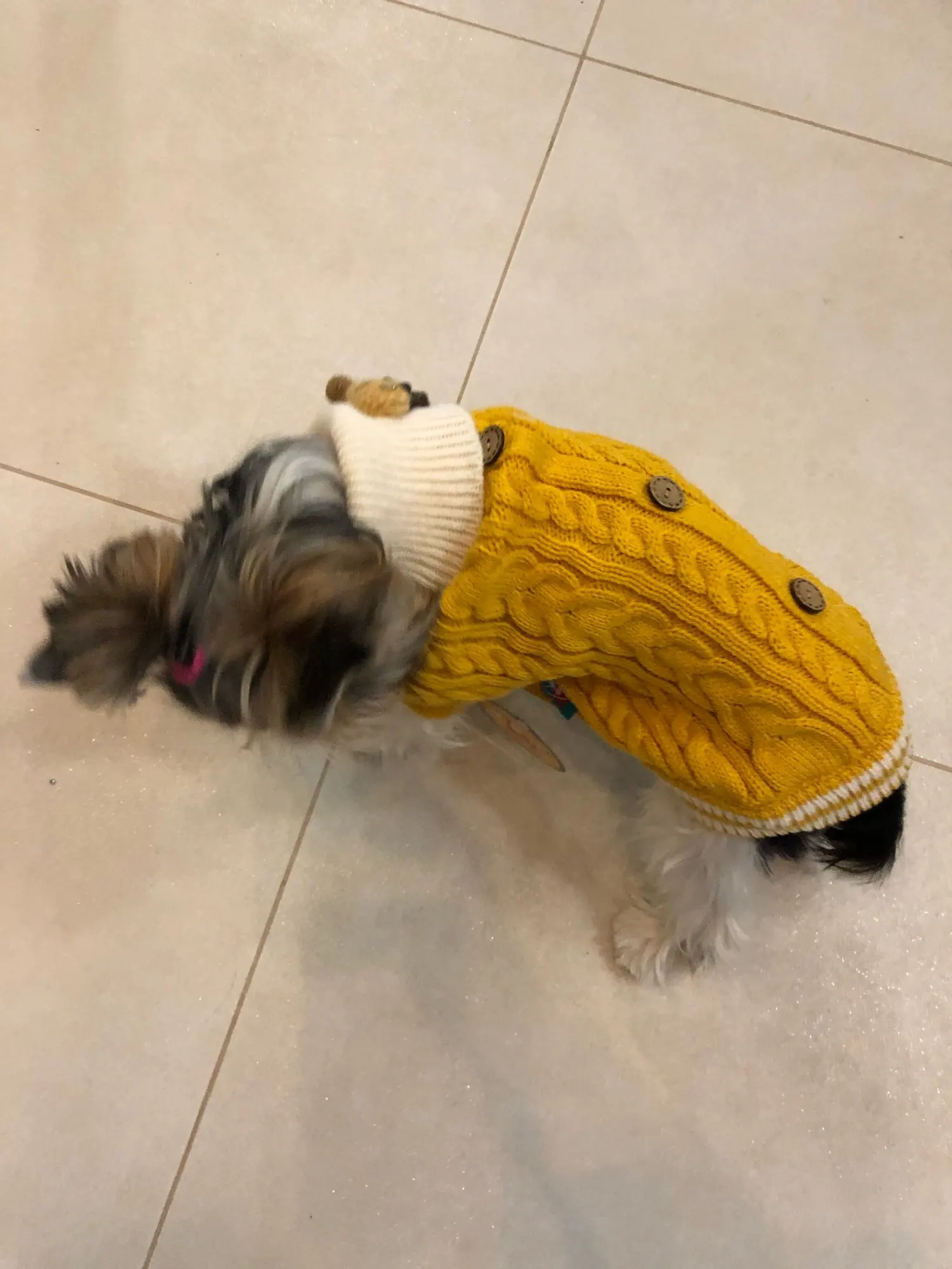 Свитер очень красивый. На йорка 2 кг размер M большой