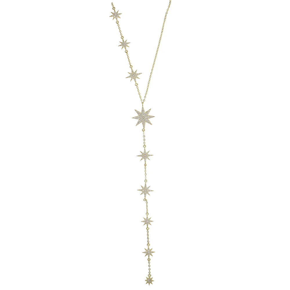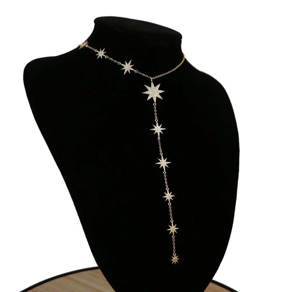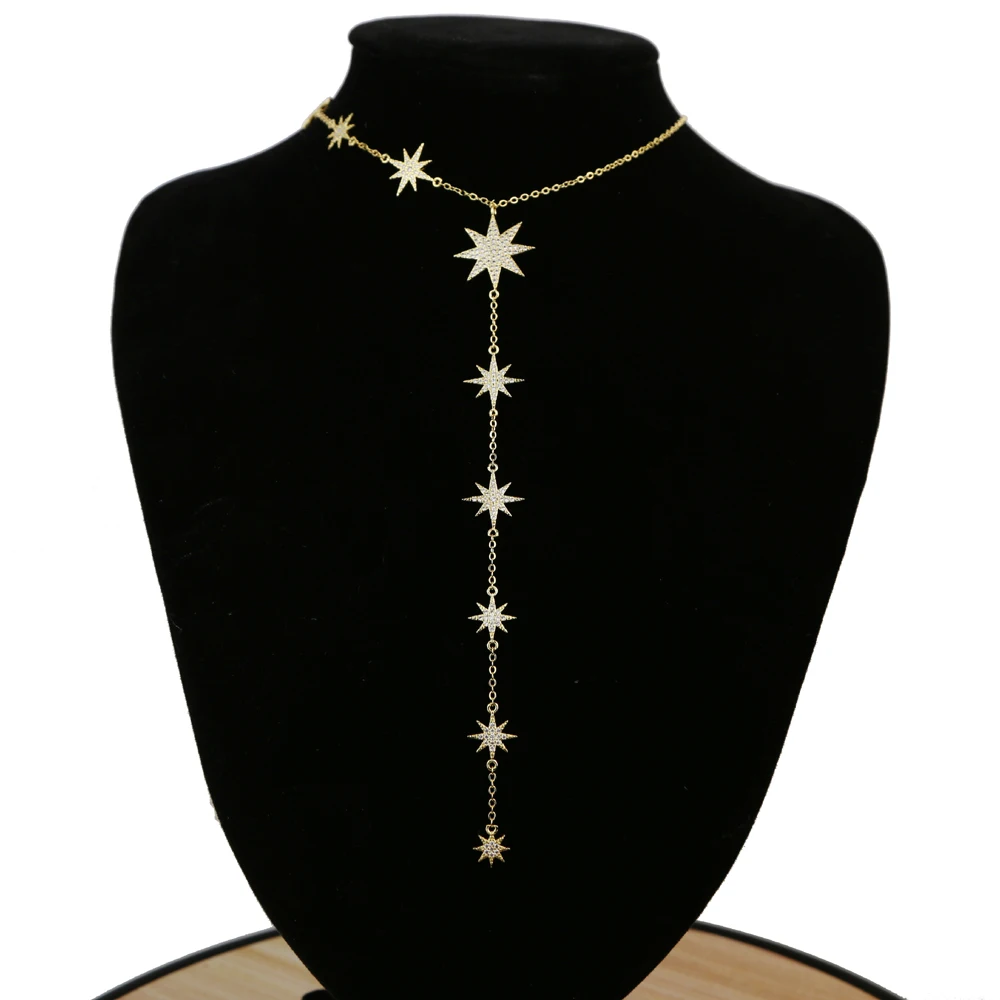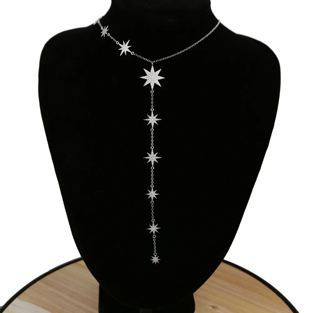 Женское колье с цирконом, цепочка длиной до ключиц со звездами, цвет серебра талисман