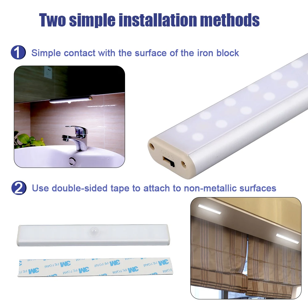 * Широкое применение: Эти светодиодные светильники для освещения шкафа под освещением шкафа идеально подходят для коридоров, шкафов, мастерских, подвалов, крытых гаражей, лестниц, дверных проемов, шкафов и других темных мест в вашем доме и сарае.