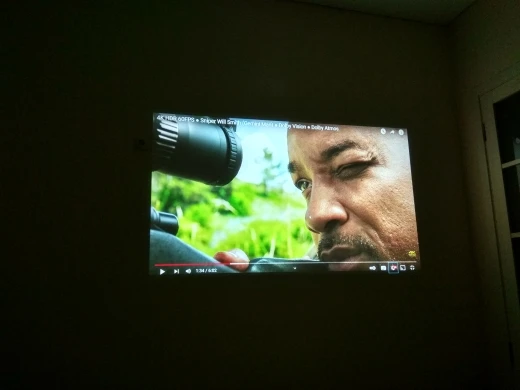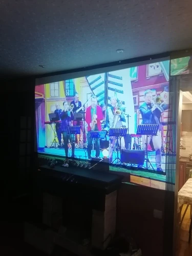 В целом проектор понравился. Качество изображения хорошее, звук хороший, но линза пыльная изнутри. И проектор внутри коробки не был зафиксирован паралоном. Хорошо, что при перевозке, ему не стрясли бошку. Приехал в целости и сохранности. Заказывали вместе с приставкой, хорошая. Своих денег стоит