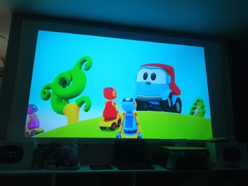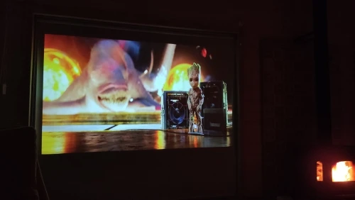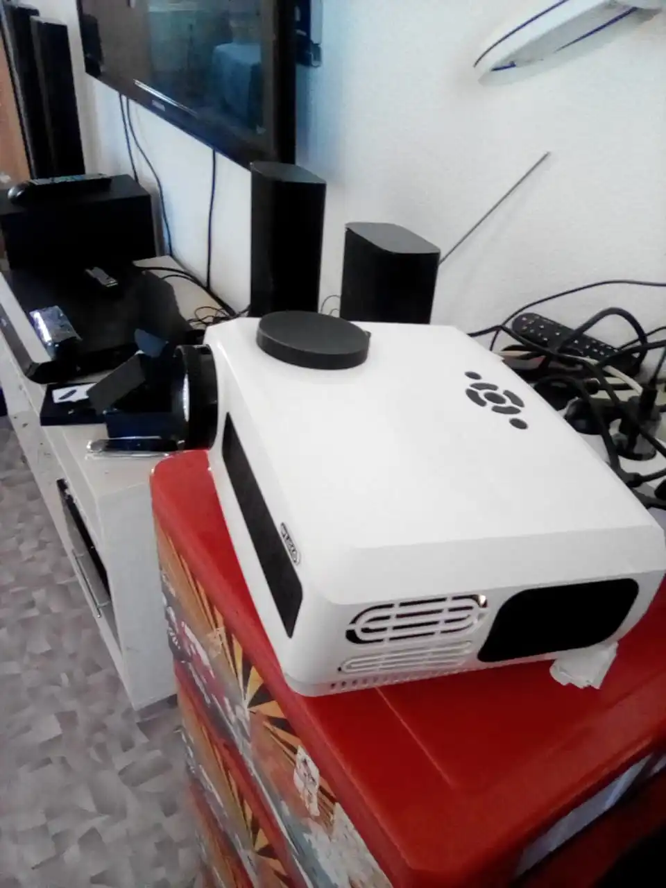 мой первый проектор, долго выбирала по отзывам и обзорам на ютубе. незначительно искажает цвета, думаю если покапаться в настройках цвета, то можно добиться идеала. даёт хорошую картинку днём (первое фото), отличная яркая картинка в темноте. встроенный динамик отлично звучит, вентилятора практически не слышно. Из-за чёрной пятницы и сезона скидок проектор шёл 18 дней