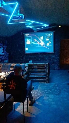Игрушка для взрослых, шум от вентилятора сильный, встроенный звук слабоват, тв бокс вроде и не сильно горячий, но зависает, пришлось вентилятор пристраивать, управление плохое, лучше покупать проектор без тв бокса, а тв бокс отдельно поискать что то получше. аэромышь не имеет голосового управления, при использовании не сможете перевести тв бокс в дежурный режим, придется каждый раз выключать из розетки, чтобы не оставлять постоянно в рабочем режиме.