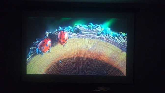 Купил с купоном голый проектор за 13300. Когда включил не много разочаровался: 1 - шум работающего проектора, 2 - картинка требует настройки по всем параметрам, 3- не все форматы прочитал, 4- сам корпус и сборка проектора среднее, 5- есть натертость на линзе (не царапина) ничем не удаляется, только может отполировать. Но! когда его полностью настроил и установил в правильном положении на 100 дюймов, получил наслаждение от просмотра фильмов. Конечно не идеально, но атмосфера настоящего кинотеатра, был впечатлен. Яркости достаточно даже я её убавил, контрастность хорошая. Красный зелёный и синий цвет требует настройки, но идеально у меня не получилось. Звук хороший от проектора 2 динамика. Вообщем, я думаю тут нечего придираться за такие деньги отлично.