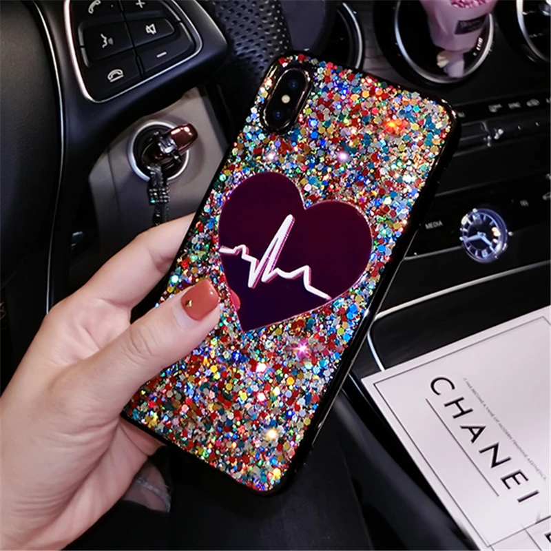 Блестящий чехол с 3D сердечками и блестками для iPhone 12 13 11 Pro...