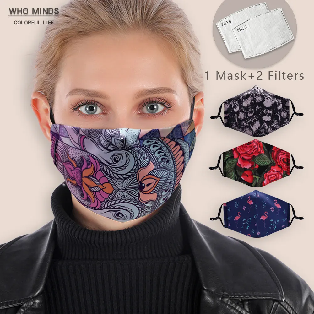 Многоразовая маска для рта с фильтром, моющаяся маска для лица с регулируемыми ремешками, PM2.5, с мандалой, слоном, копи, Пылезащитная маска от гриппа