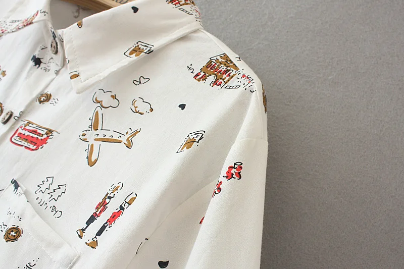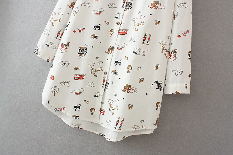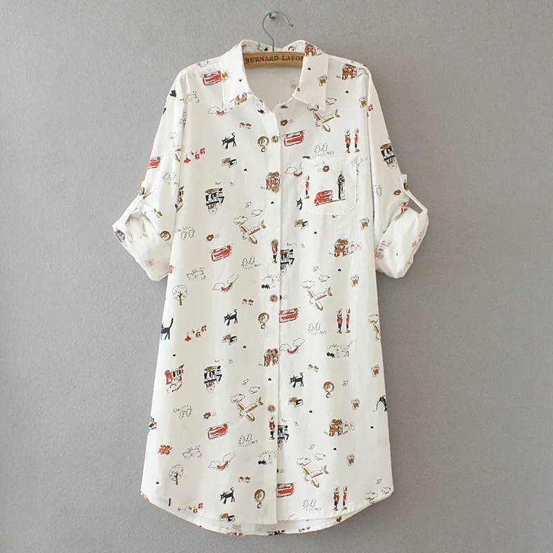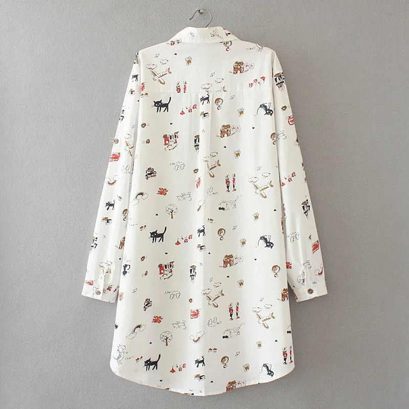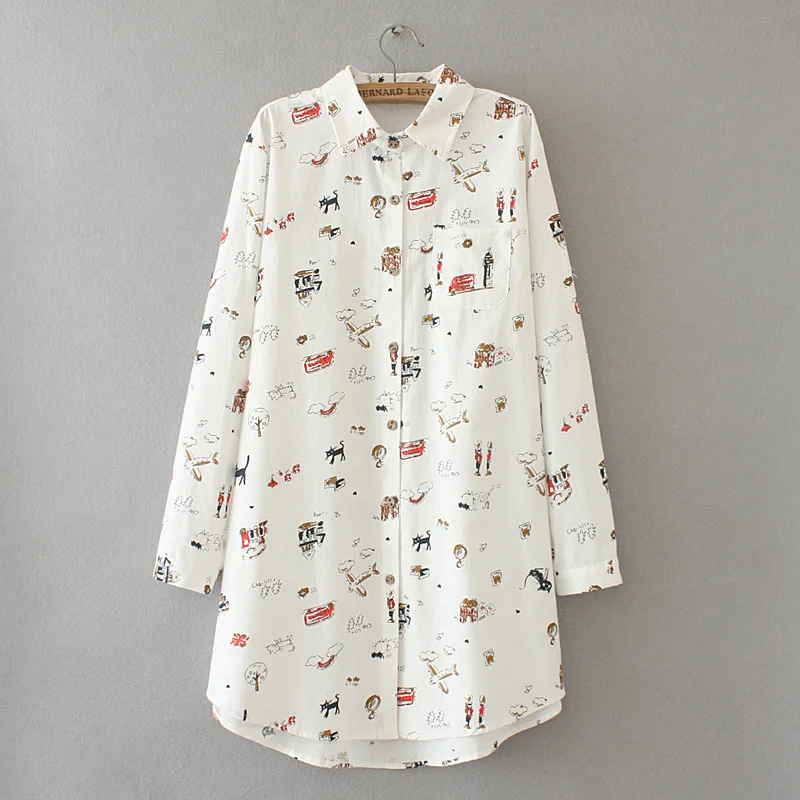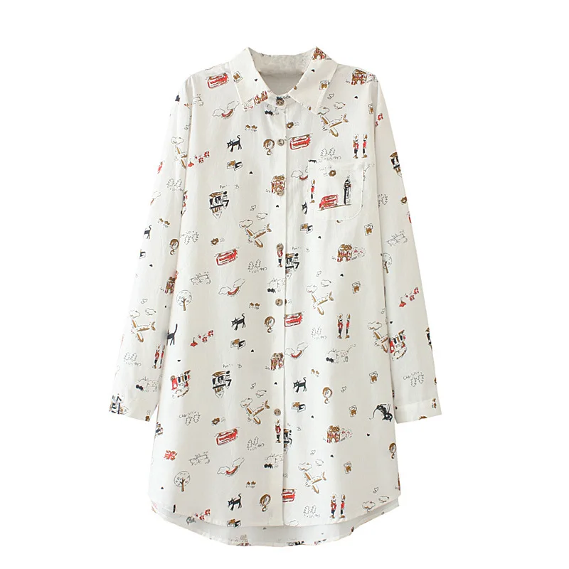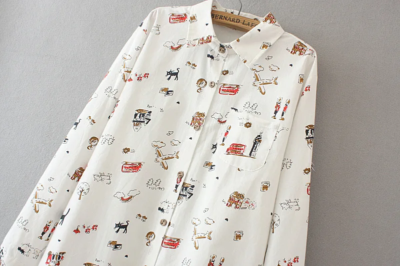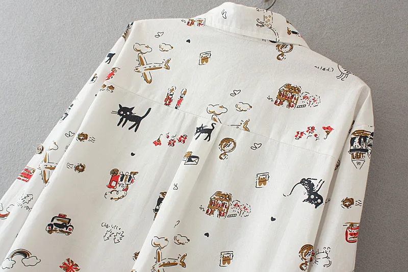 Рубашка женская с мультяшным принтом, Топ с длинным рукавом, свободная размера плюс одежда, E2 722, осень