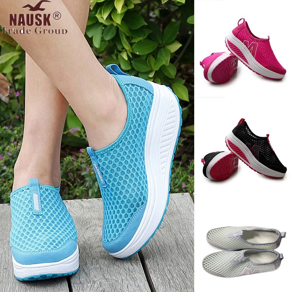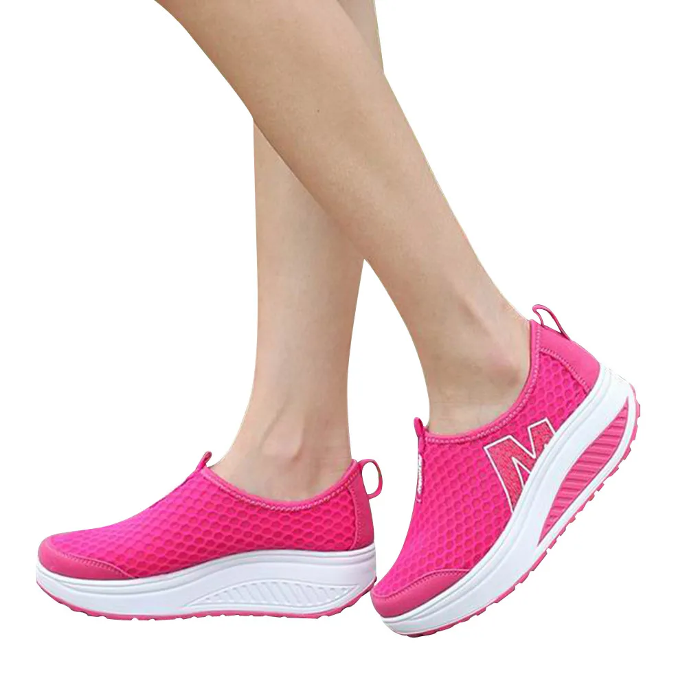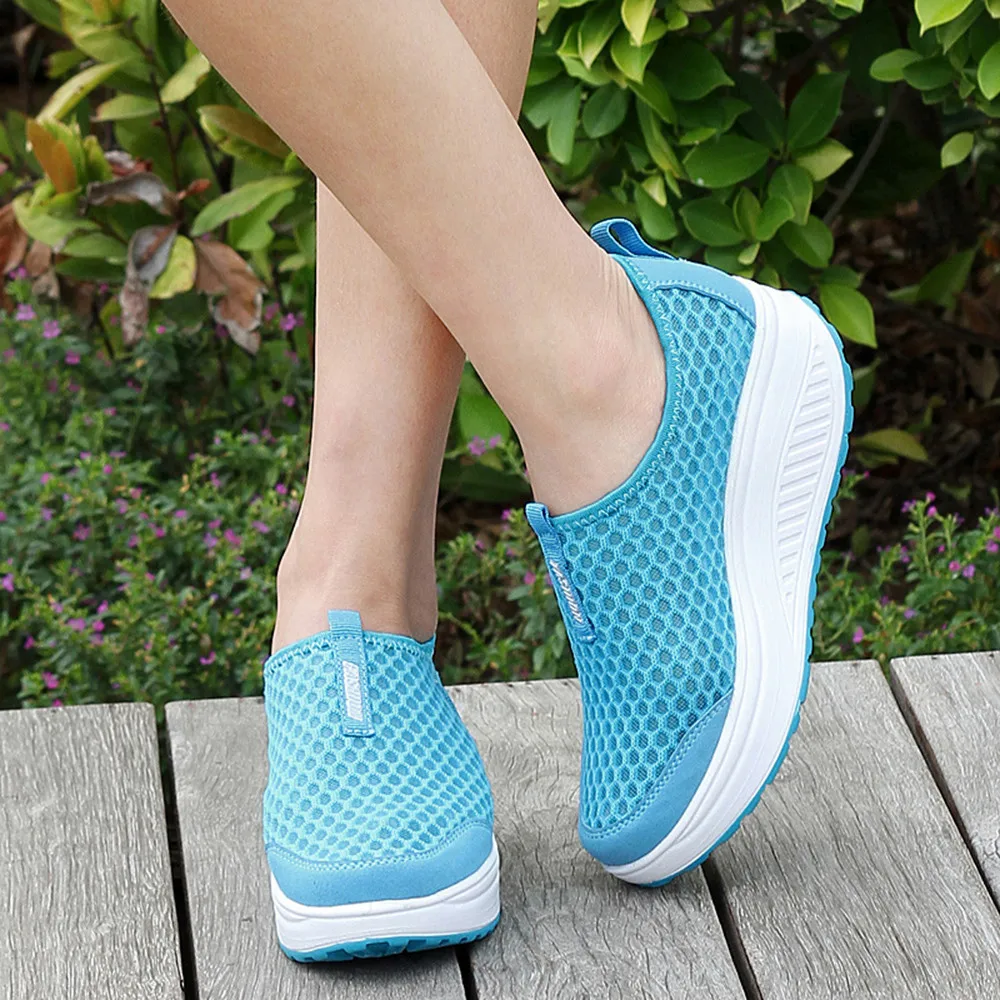 Туфли женские сетчатые на платформе, дышащие кроссовки, лоферы, дышащая обувь на танкетке, без каблука, #