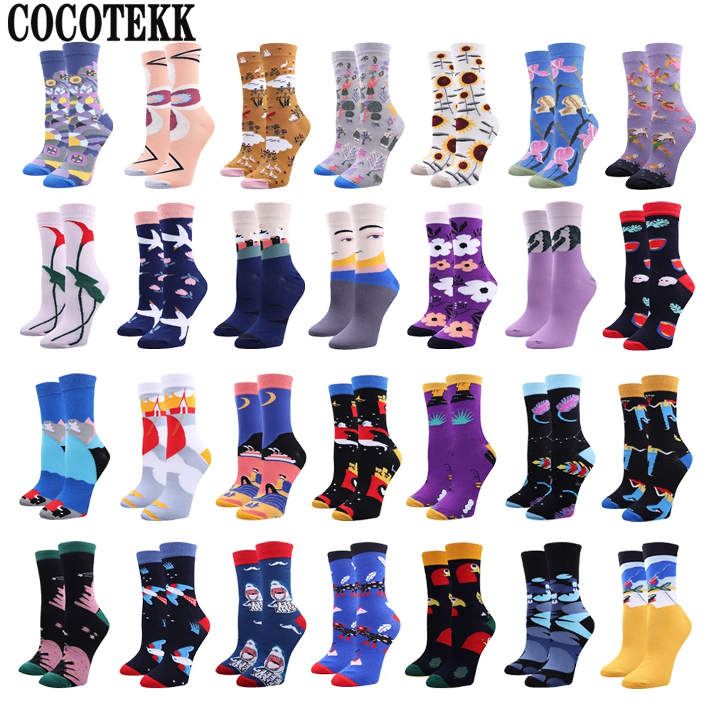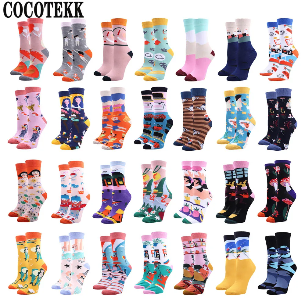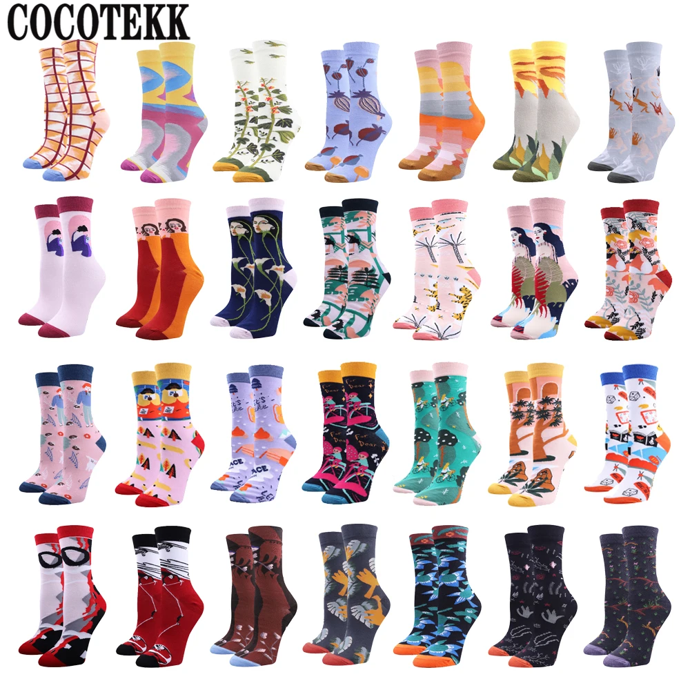 Лидер продаж, новый бренд, модные уличные женские носки в европейском стиле, зимние теплые популярные хлопковые повседневные уличные носки, забавные Носки Happy Sox, Прямая поставка