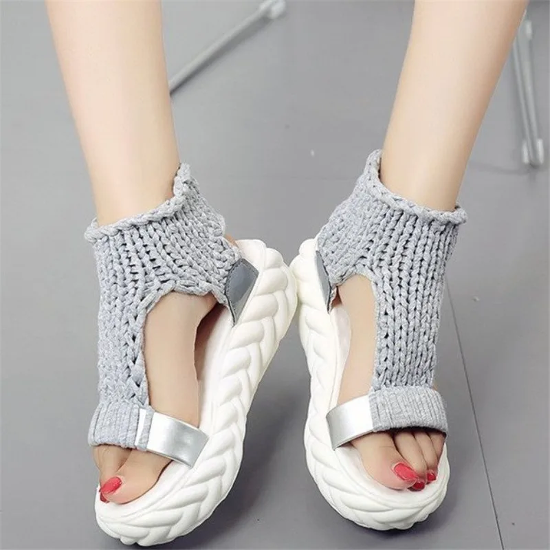 Трикотажная сетчатая дышащая обувь на высоком толстом каблуке без з...