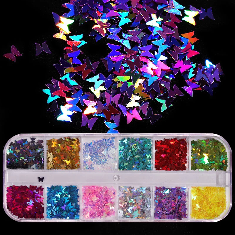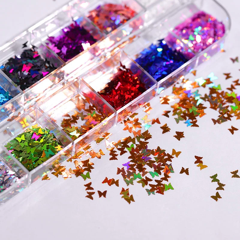 Зеркальные Блестящие бабочки для ногтей блестки смешанные цвета голографические Блестки для ногтей 3D хлопья ломтики Spangle WH998