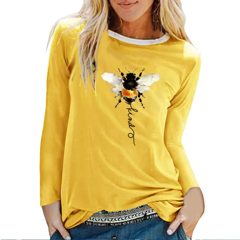 Женские футболки с длинным рукавом и принтом пчелы на осень и зиму 2020, женские футболки из хлопка с графическим принтом, уличная одежда, белые топы с вырезом лодочкой