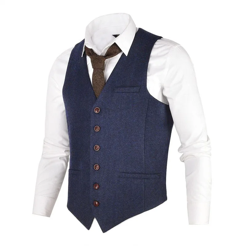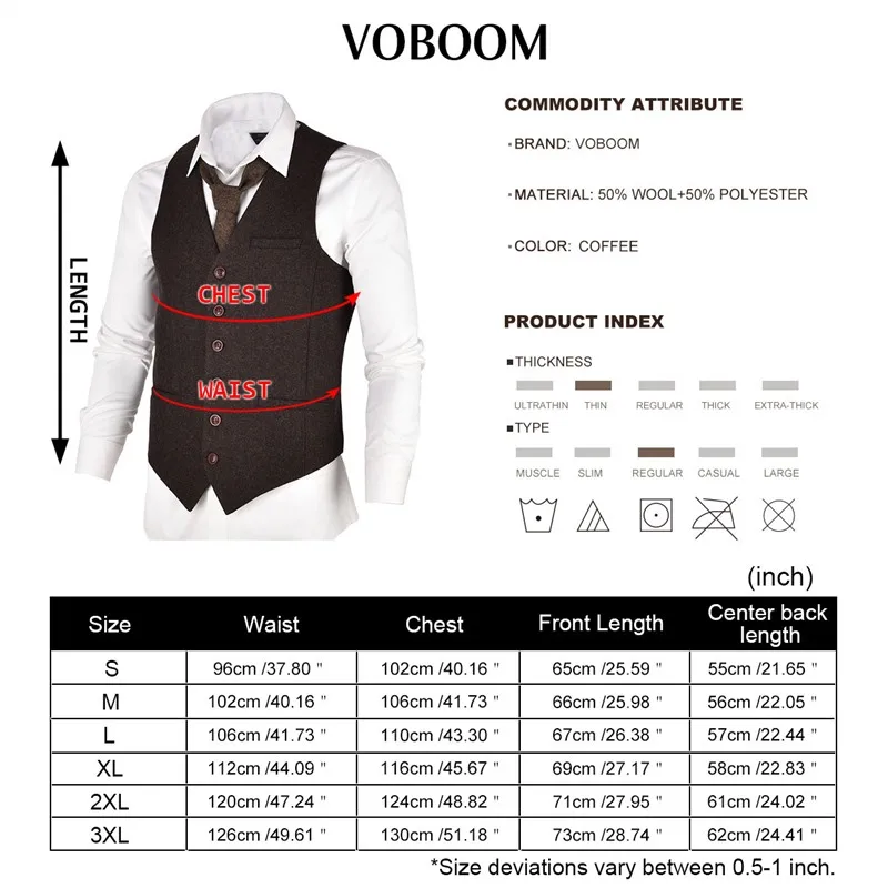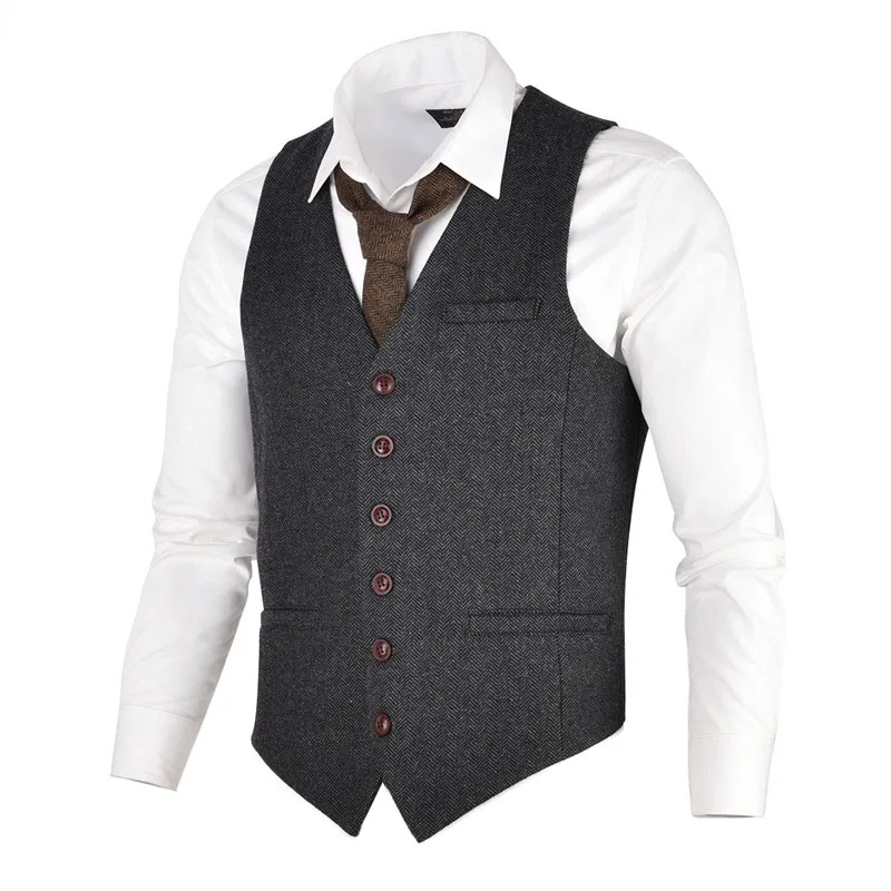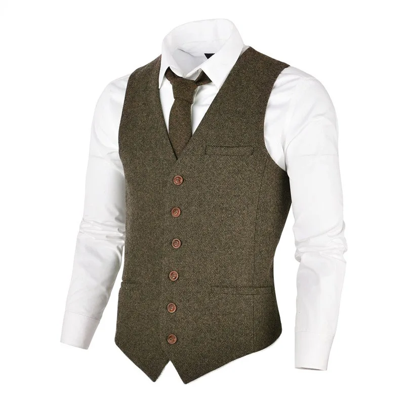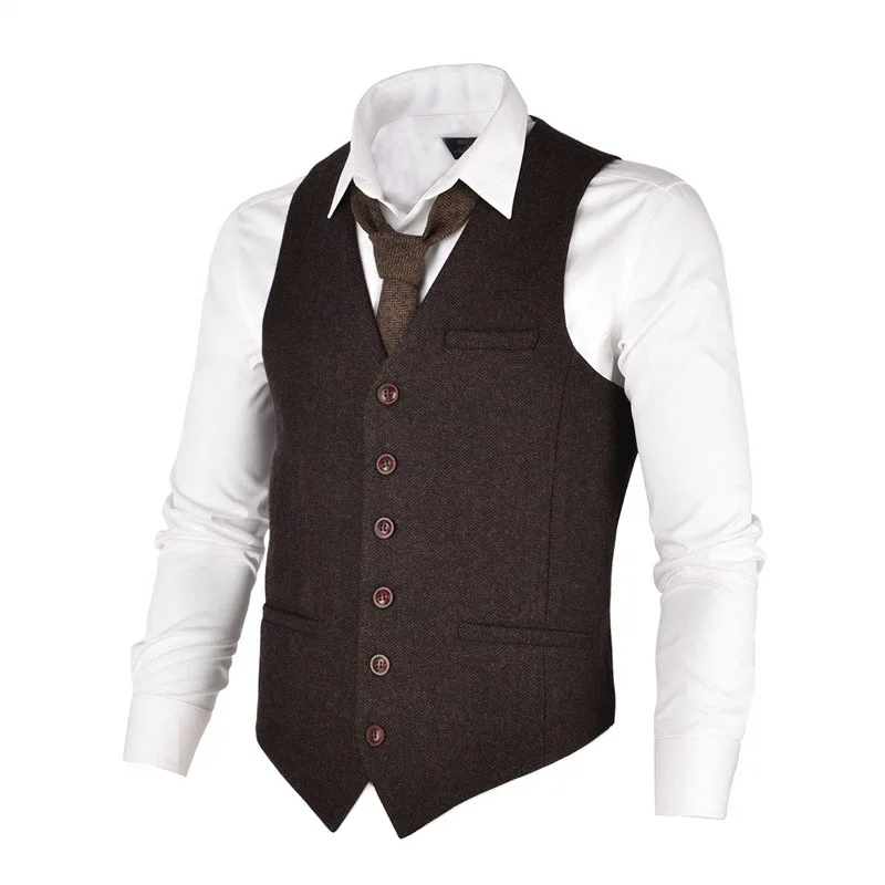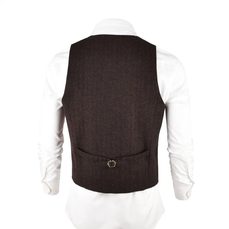 Мужской жилет VOBOOM, кофейный костюм, жилет, мужской однобортный твидовый жилет в елочку из смески шерсти, 007