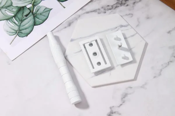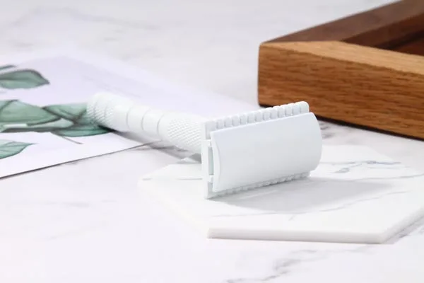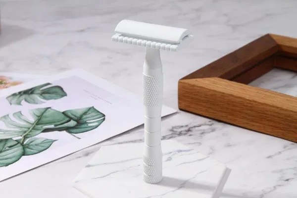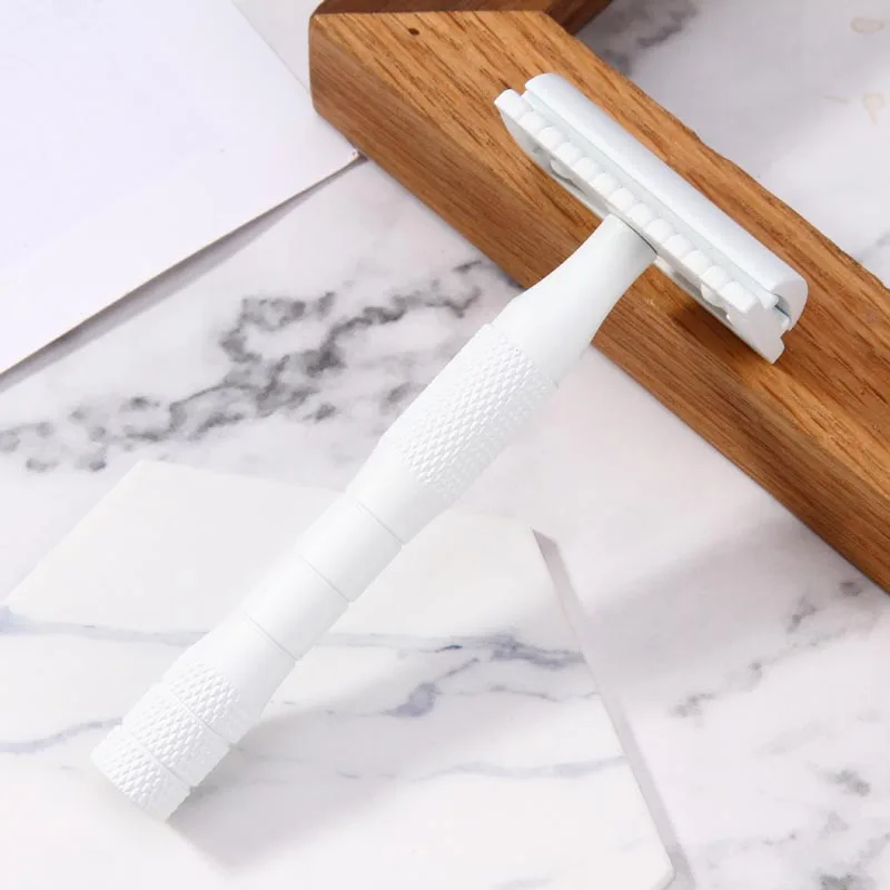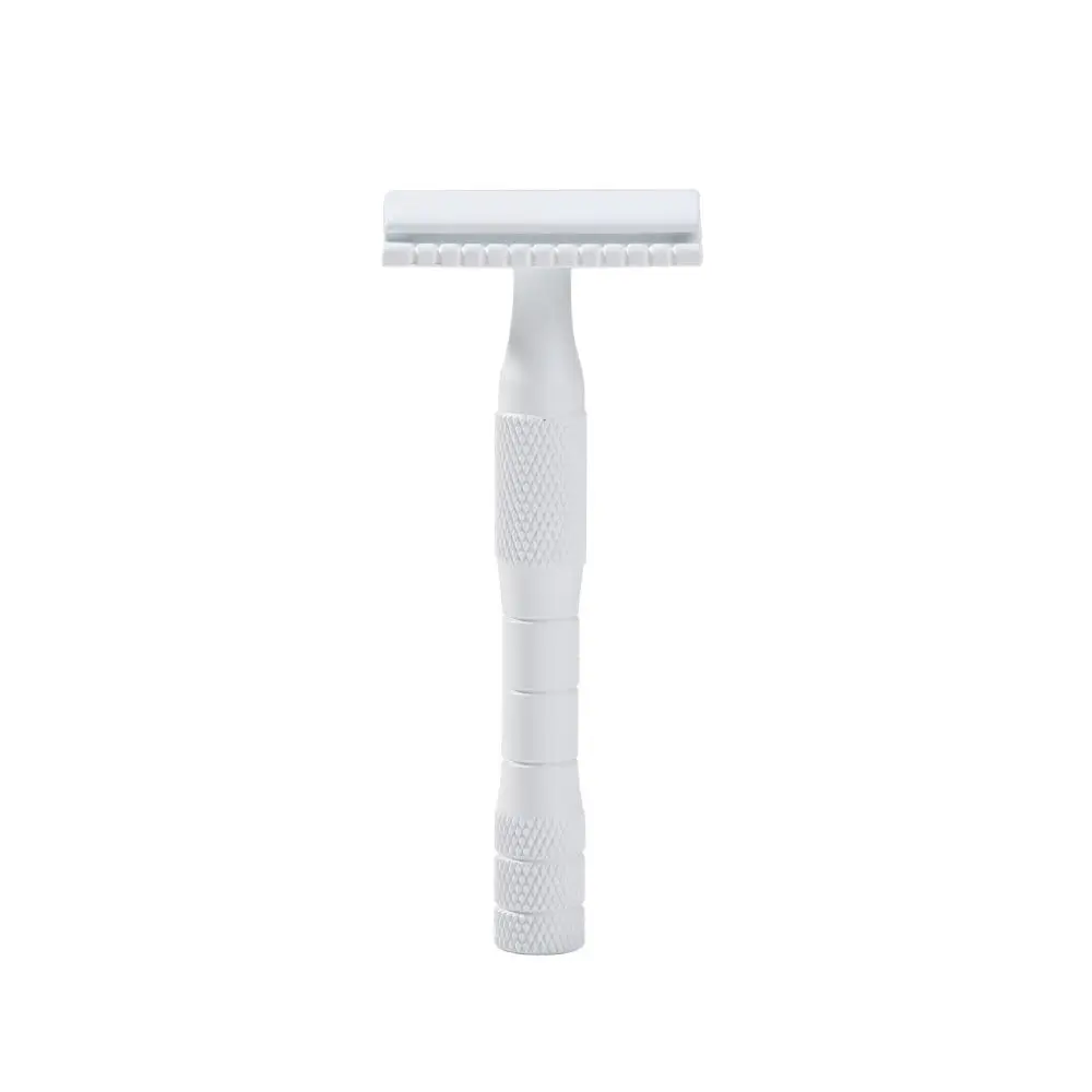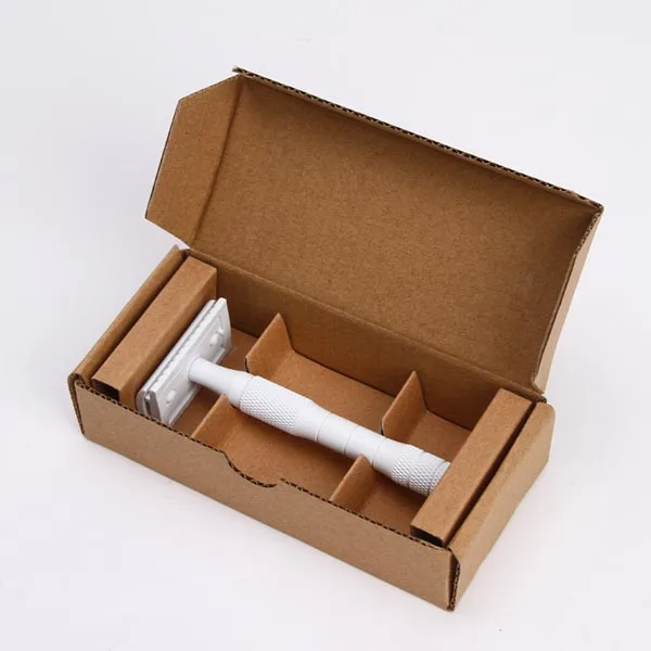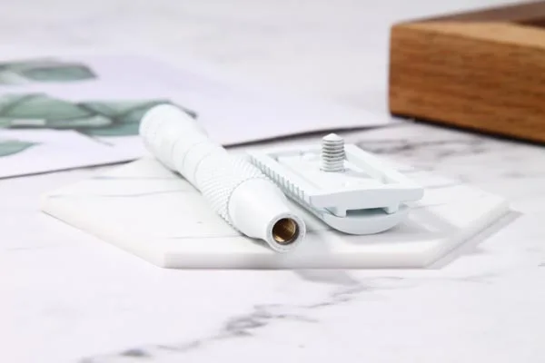 Материал бритвенной головки: цинковый сплав Материал рукоятки: латунь Длина ручки: 91 мм Общая длина бритвы: 95 мм Диаметр ручки: 12 мм Цвет: белый Общий вес: около 83 г Посылка: 1 Бритва/без лезвий. Подарочная коробка: без подарочной коробки. Логотип: без